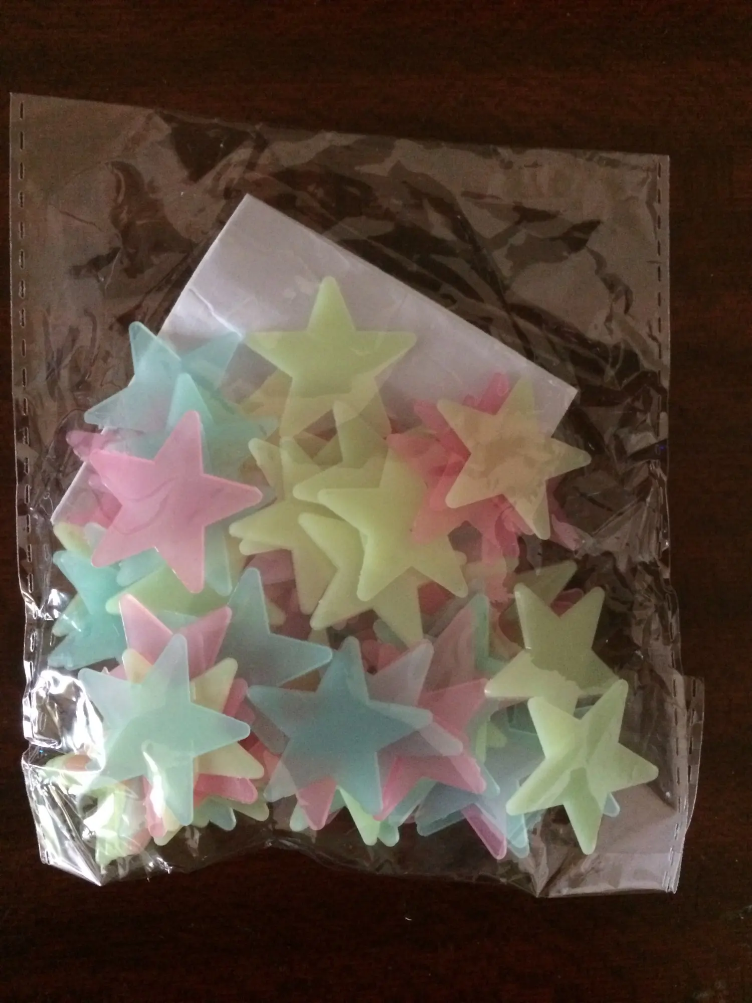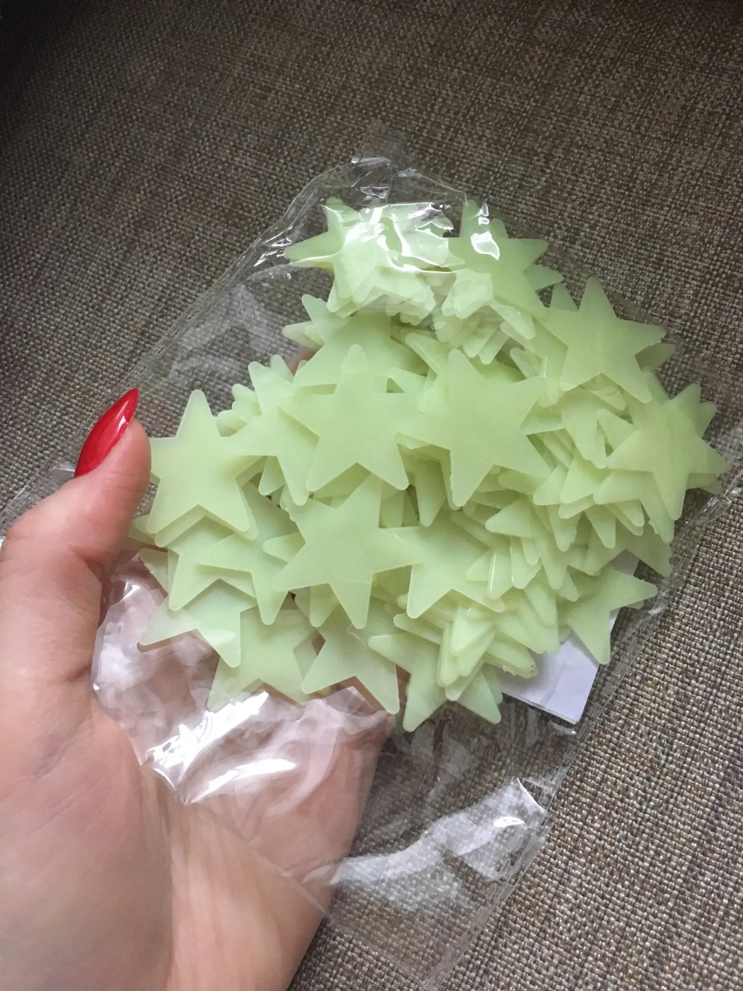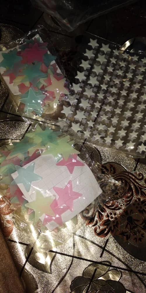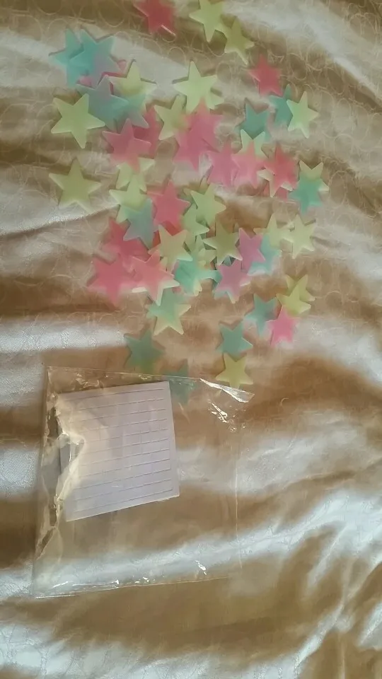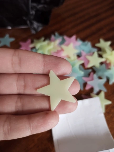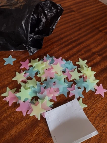 В первый раз я заказал только одну упаковку звезд, я их любил, поэтому теперь я заказал два каждого цвета, они прибыли ровно через месяц. Доставка была супер быстрой, правда в том, что я в восторге, в восторге от скорости доставки и продукта. Они прекрасно загораются, я получил 100 наклеек, каждый с соответствующим клеем. Супер рекомендуется.