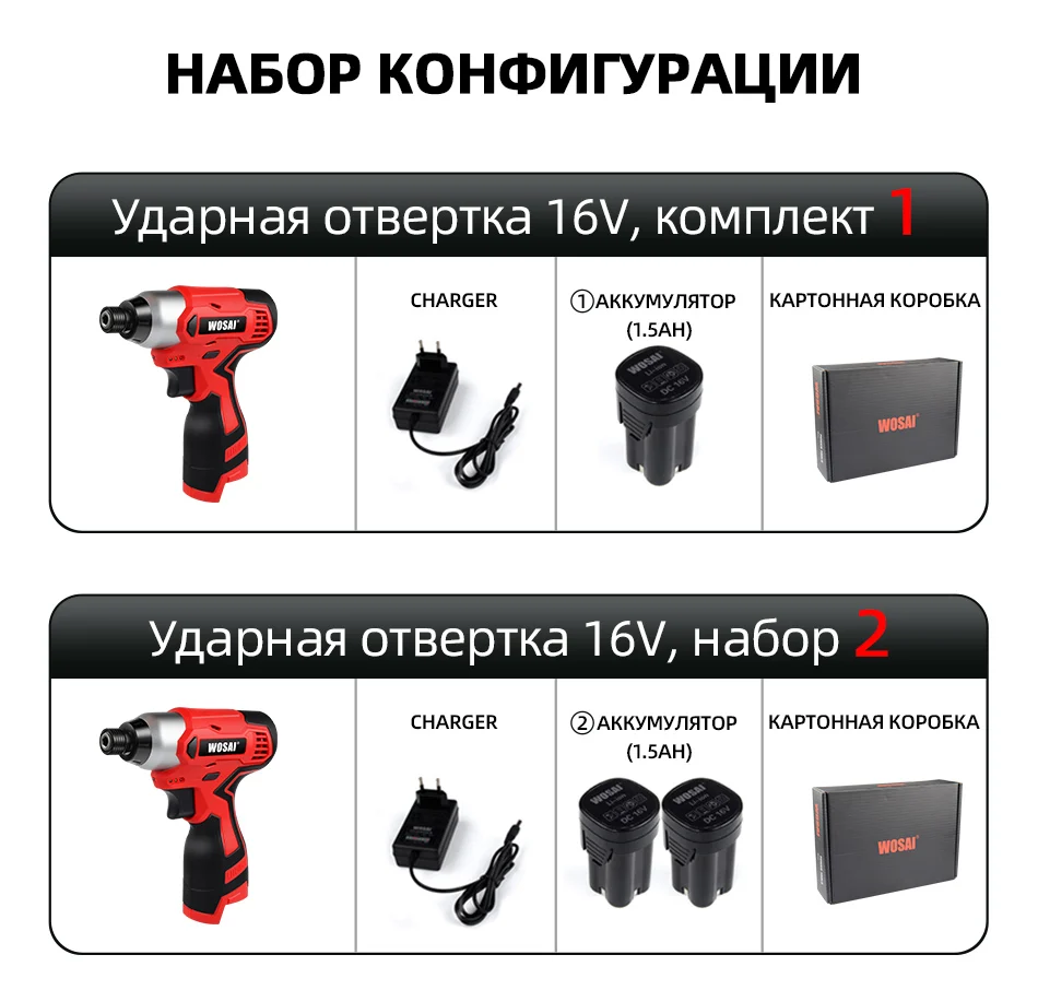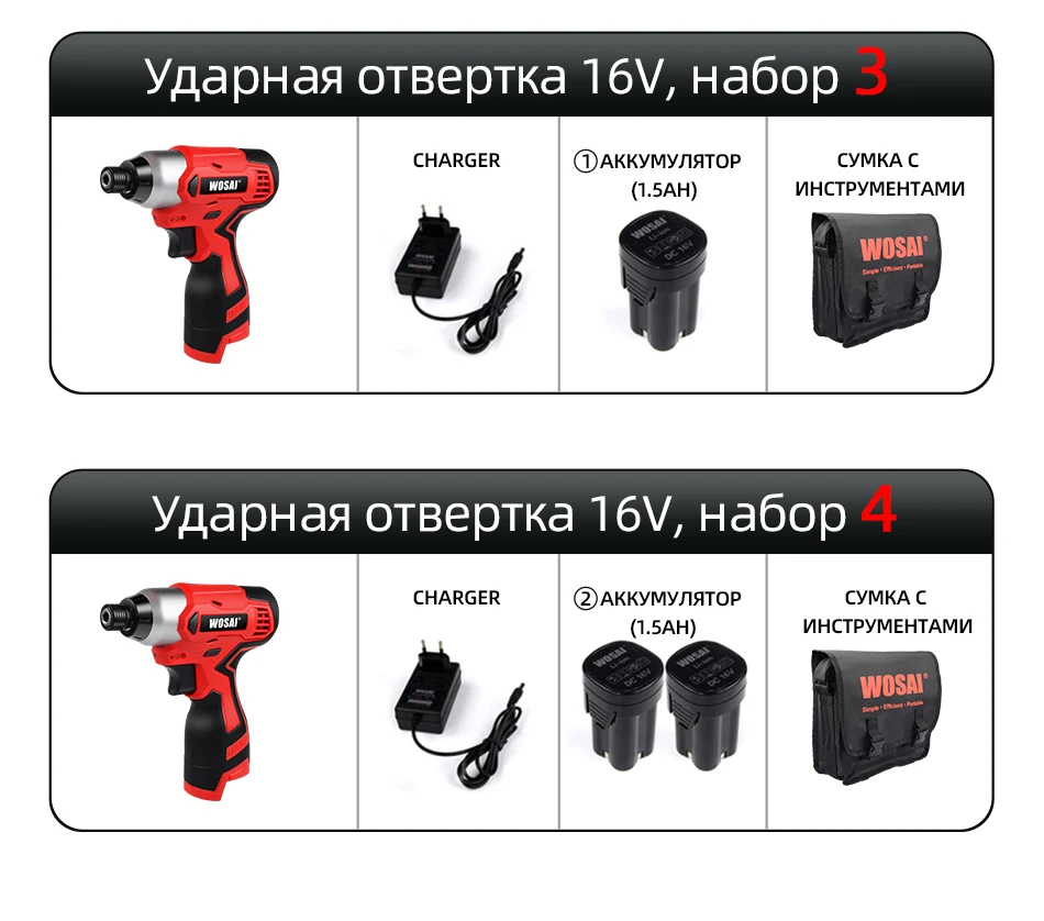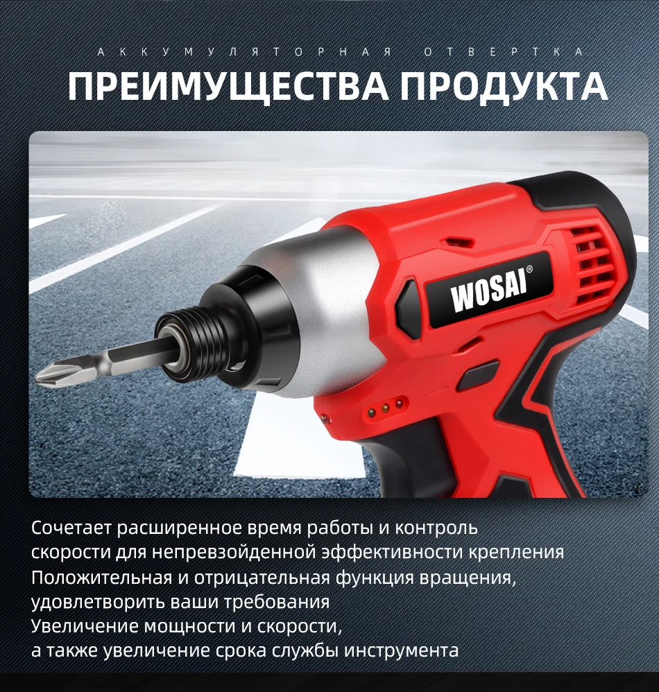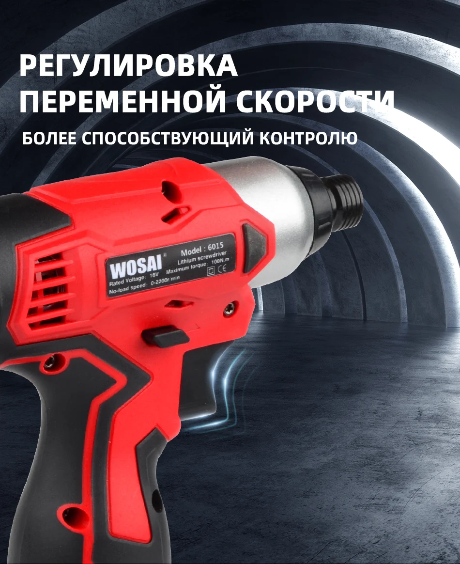 Дрель-шуруповерт WOSAI MT-SER 100N аккумуляторная, 16 В