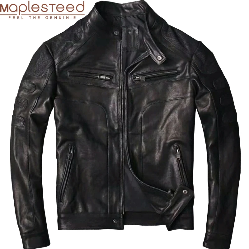 Мужская кожаная куртка MAPLESTEED, черная короткая приталенная куртка из козьей шкуры, на лето и весну, М110, 100%
