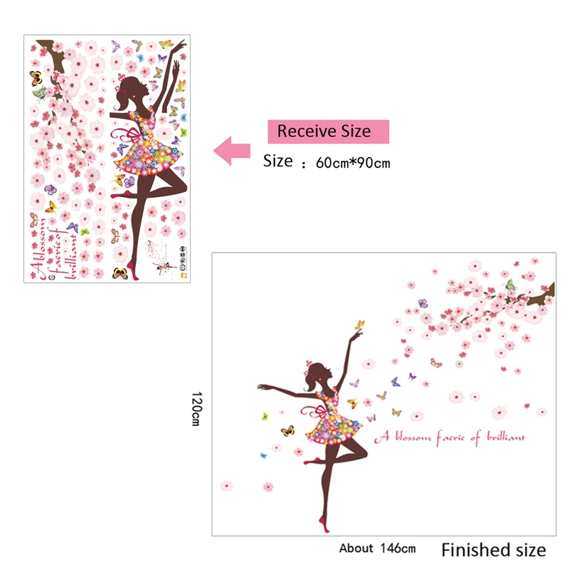 Цветок наклейки на стену Феи Бабочки спальня девушки комнаты украшения дома художественные наклейки 3D обои стикер adesivo де parede