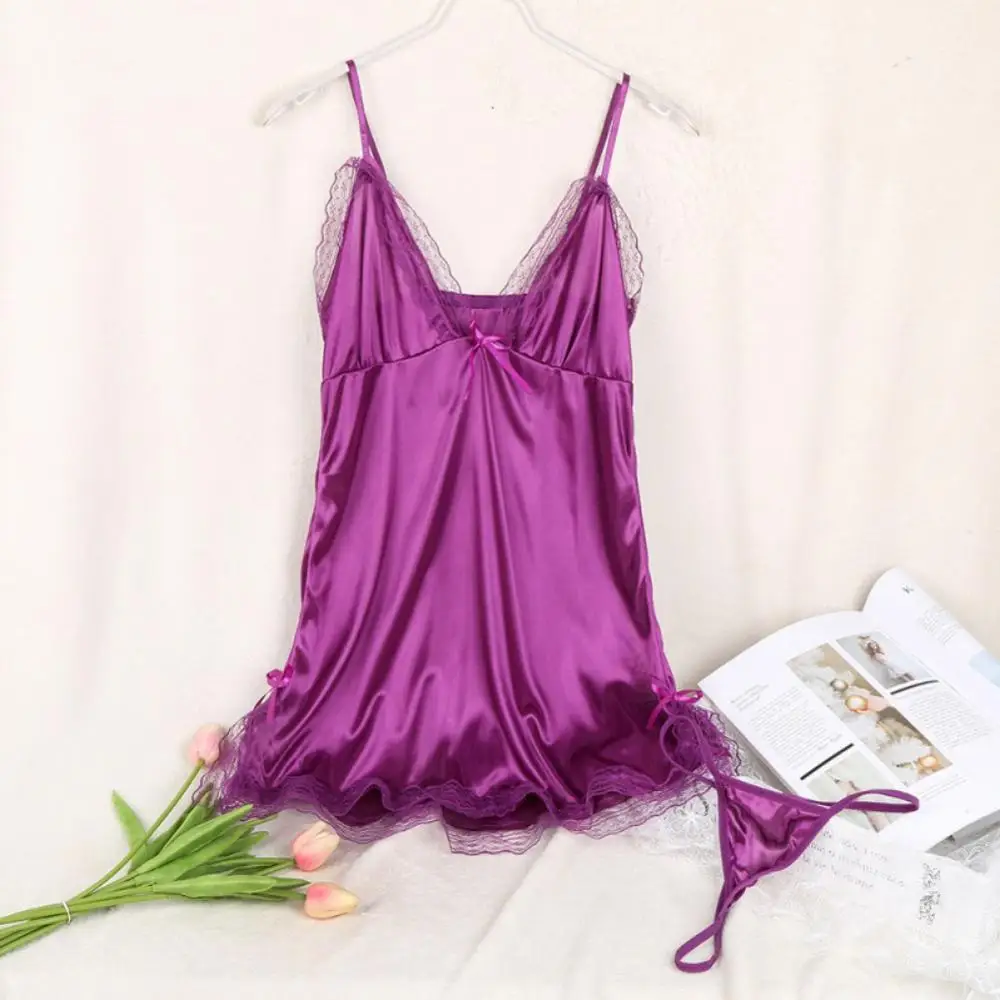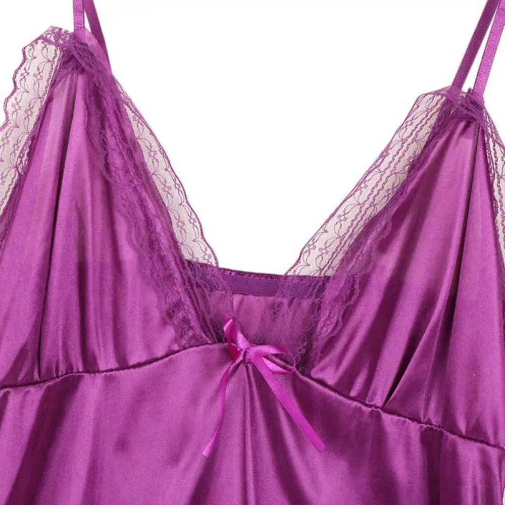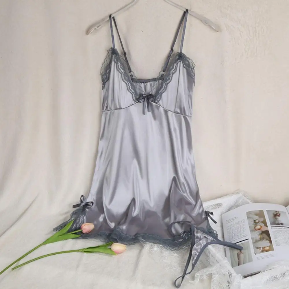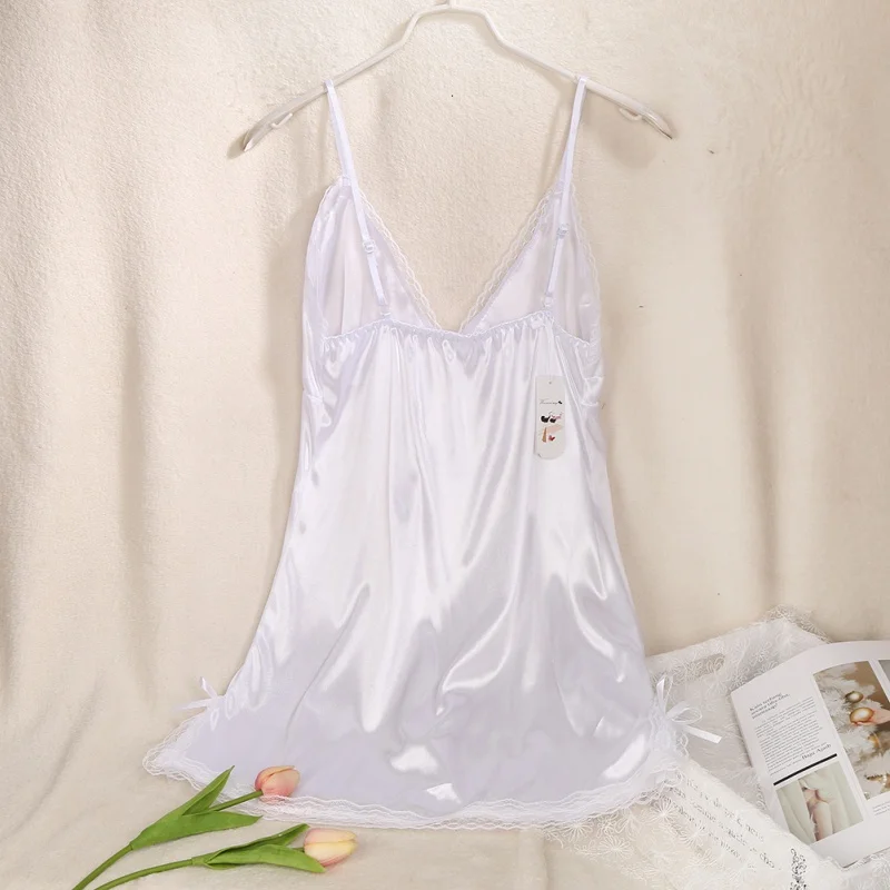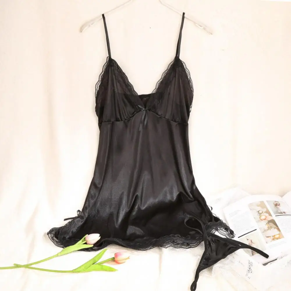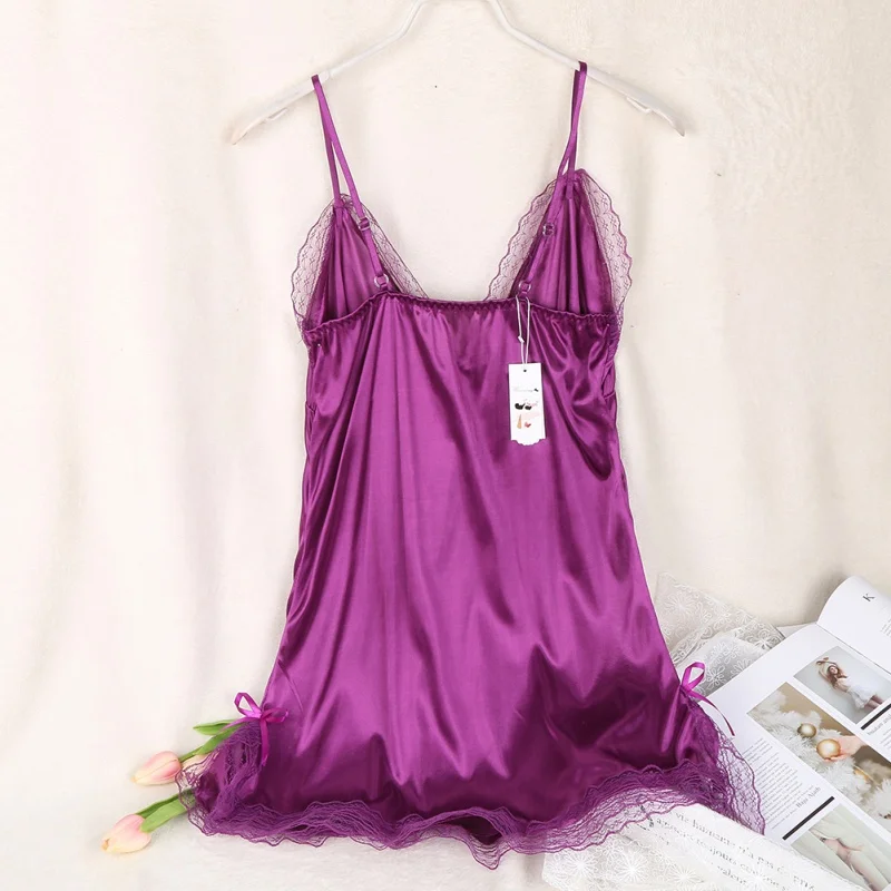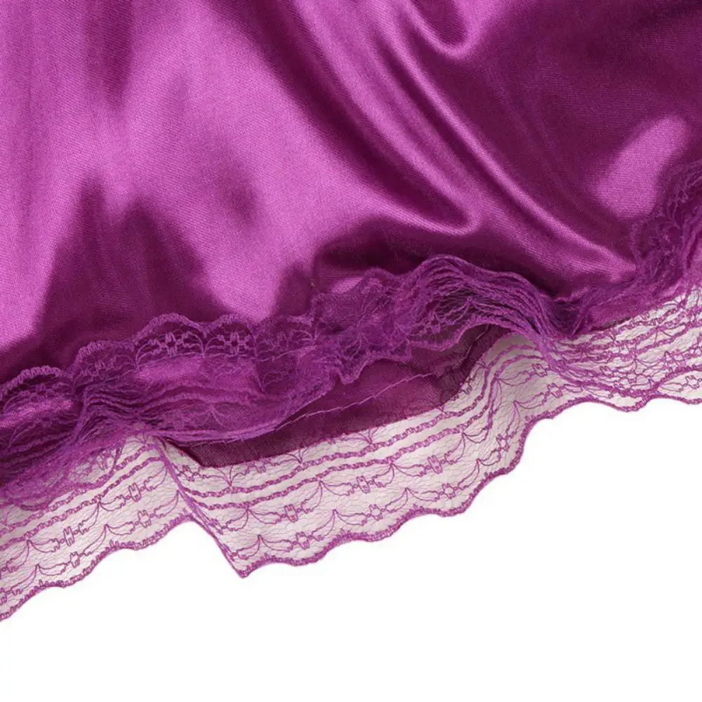 Женская ночная рубашка с глубоким V-образным вырезом, шелковое кружевное нижнее белье, одноцветные юбки