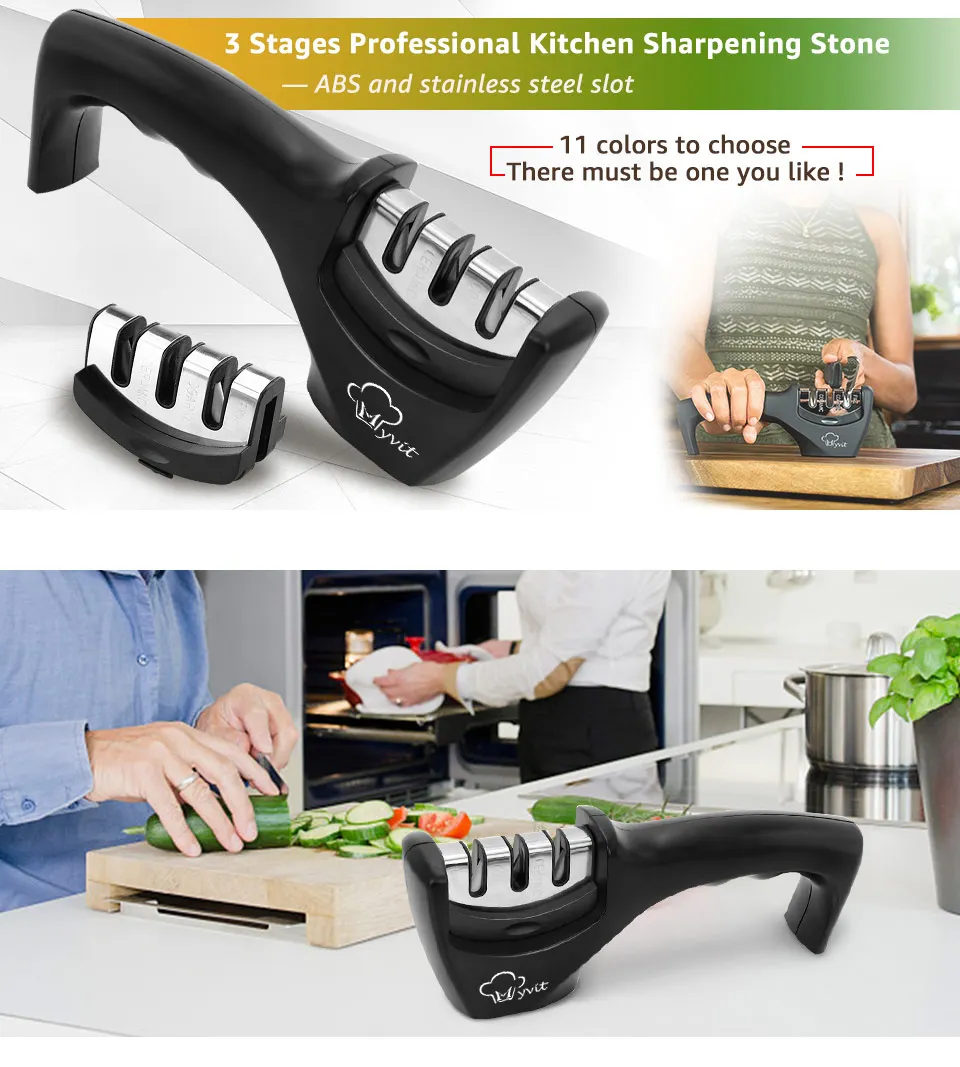 Точилка для ножей, 3 этапа, профессиональный точильный камень для кухни, 1 шт.компл., с вольфрамом, алмазной, керамической поверхностью, аксессуары для поваров