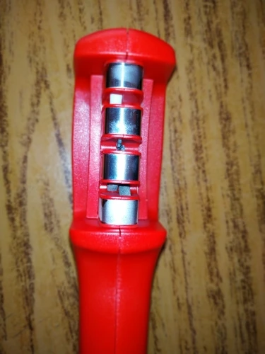Отличная точилка, реально работает! За 5 минут поправил два ножа, проведя ими по 10-15 раз во втором и третьем отсеке. И наточил большой очень тупой нож, который пришлось уже по 30-40 раз поочередно проводить по всем трём отсекам. Доставка довольно быстрая за 11 дней в Москву. Заказал самовывоз в Пятёрочку рядом с домом, ещё ближе чем на почту идти. Буду заказывать ещё одну для дачи, продавцу спасибо!