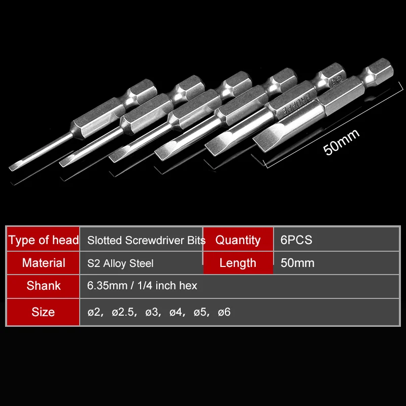 6 шт., магнитные биты для отверток, 2-6 мм