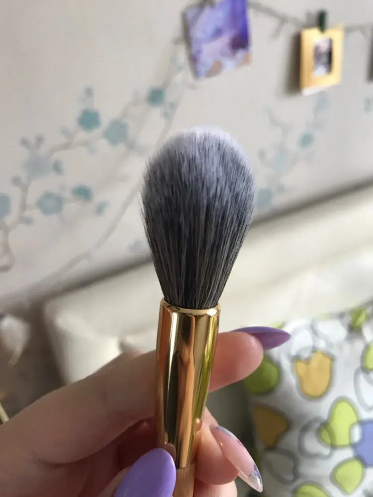 Огонь! Я ей уже делала весь макияж. Тон наносит тонко (главное не очень густой брать), кремовые румяна, пудра, сухой скульптор, хайлайтер - со всем справилась отлично. Тут главное очень не очень плотные и пигментированные продукты брать, кисть довольно упругая и не особо большая, есть шанс напетнить. А густой тон может не разнести из-за длинного ворса. А ведь она для хайлайтера и тут она тоже хорошо справляется. Но для меня она мультифункциональная
