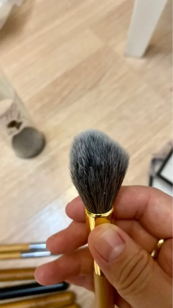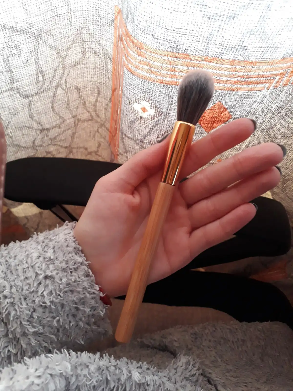 Просто потрясающая кисть. Я сделал бронзатор, чем Румяна .... отлично работает. Одним из моих любимых будет. Был немного клея .... к сожалению.... Один жесткий покнет .... но я дам в любом случае 5 *-это круто. И замечательный Размер... вы можете легко использовать в небольших поддонах