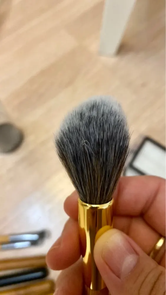 Это лучшие кисти с алиэкспресс по-моему мнению. Упаковано было хорошо, ворс не помялся. Выполнение самой кисти за такие деньги просто превосходно, ручка выполнена из дерева, выглядит очень достойно и дорого. Кисть набита хорошо, ворс очень мягкий и не лезет. Дешевая кисть обычно собрана хлипко и постоянно болтается, тут же все крепко собрано. Рекомендую к заказу однозначно, а лучше вообще брать набор, так и выгоднее, и будут все необходимые кисти в хорошем качестве.