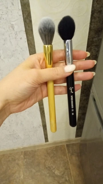 Заказала уже обе кисти. та что длиннее ворс отлично подошла для хайлайтера. маленькую попробовала для тона, неплохо вроде, но я не люблю наносить кистью, привычнее руками, да и мыть кисть каждый раз не хочется. Качество хорошее.