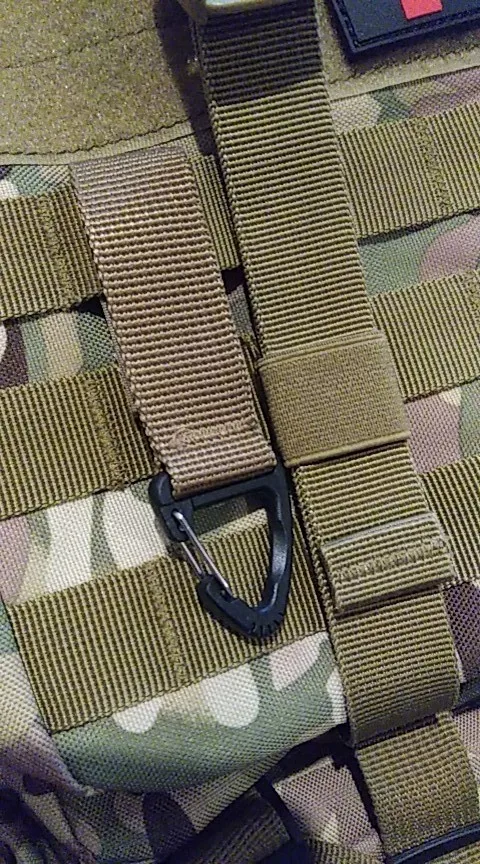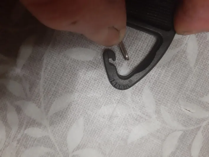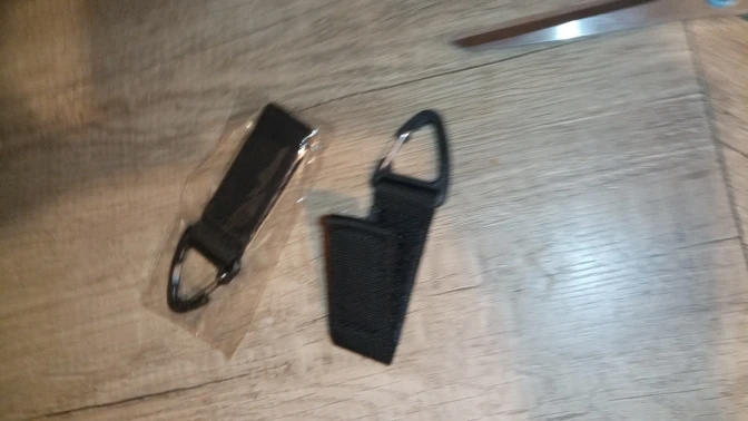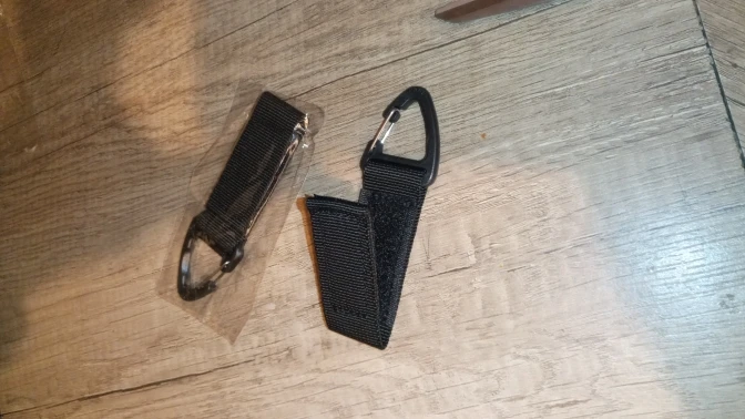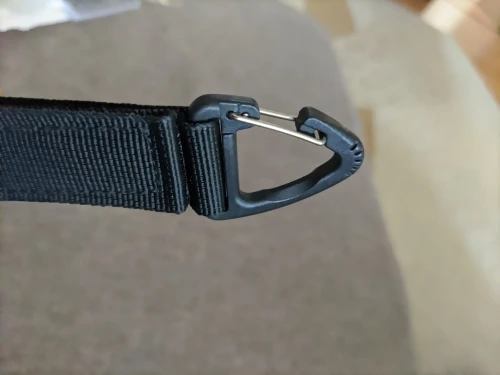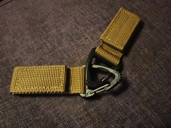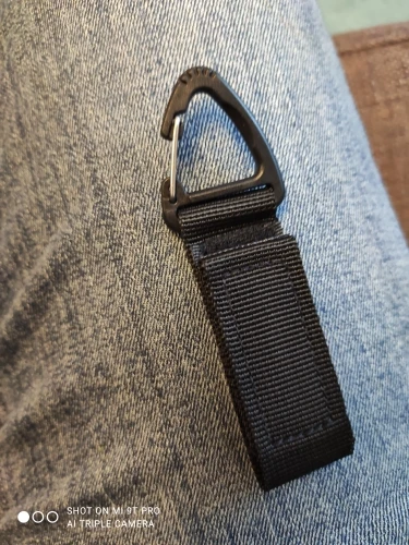 Повесил на ремень, чтобы цеплять перчатки. Очень удобно, собачка не тугая.