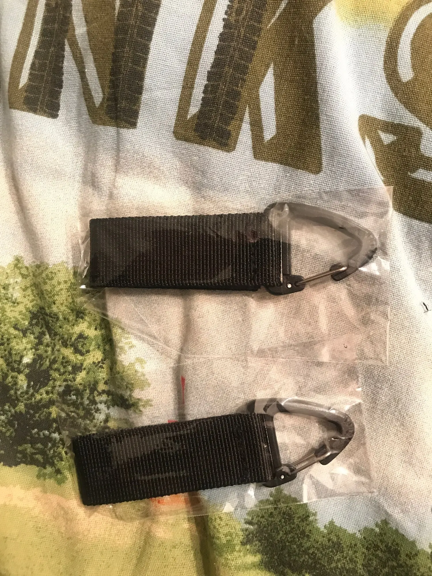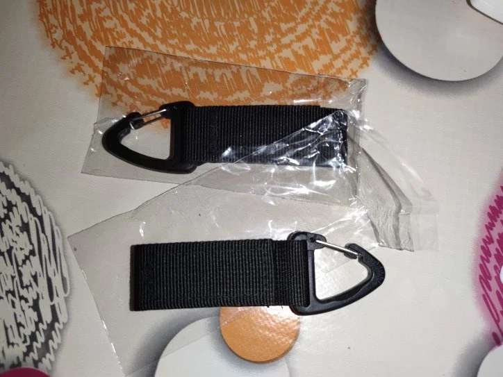 Карабины пришли очень быстро, в объединенной посылке. Качественные, прошиты хорошо. Без запаха.