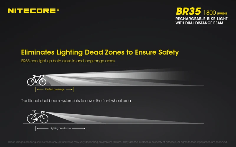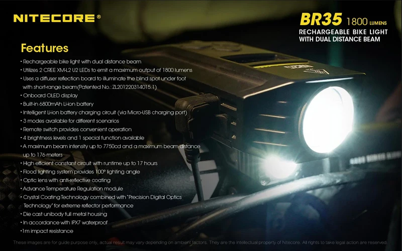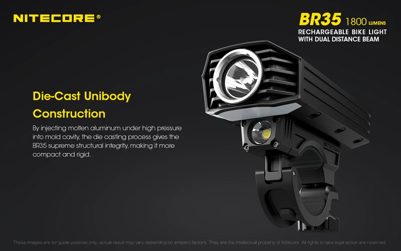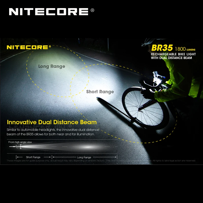 Светодиодный перезаряжаемый фонарь Nitecore BR35 CREE 1800 U2, XM-L2 люмен, для велосипедавелосипеда, со встроенным аккумулятором 6800 мА ч