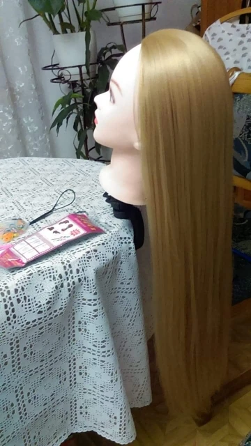 Волос гофрированный, сильно сыпется при первом использовании, нужно хорошо вычесать, и при расчесывании использовать расческу с широким расстоянием зубцов. Цвет волос очень красивый, но вот промежутки между рядками волос достаточно большие и смотрятся, как залысины, особенно на затылке