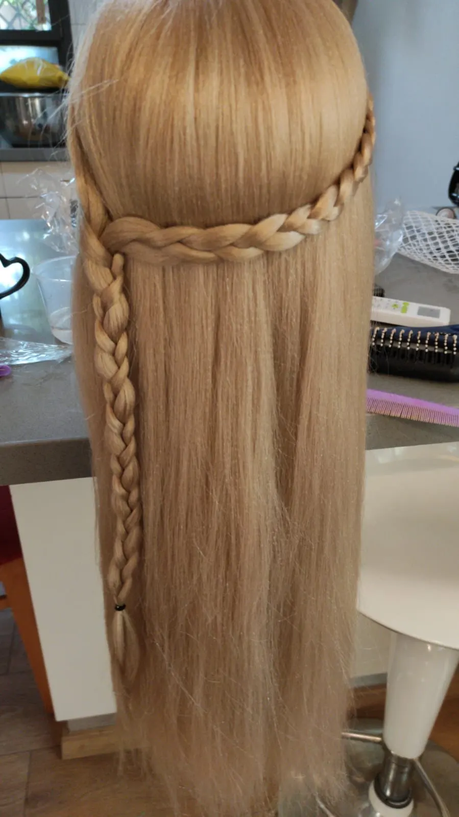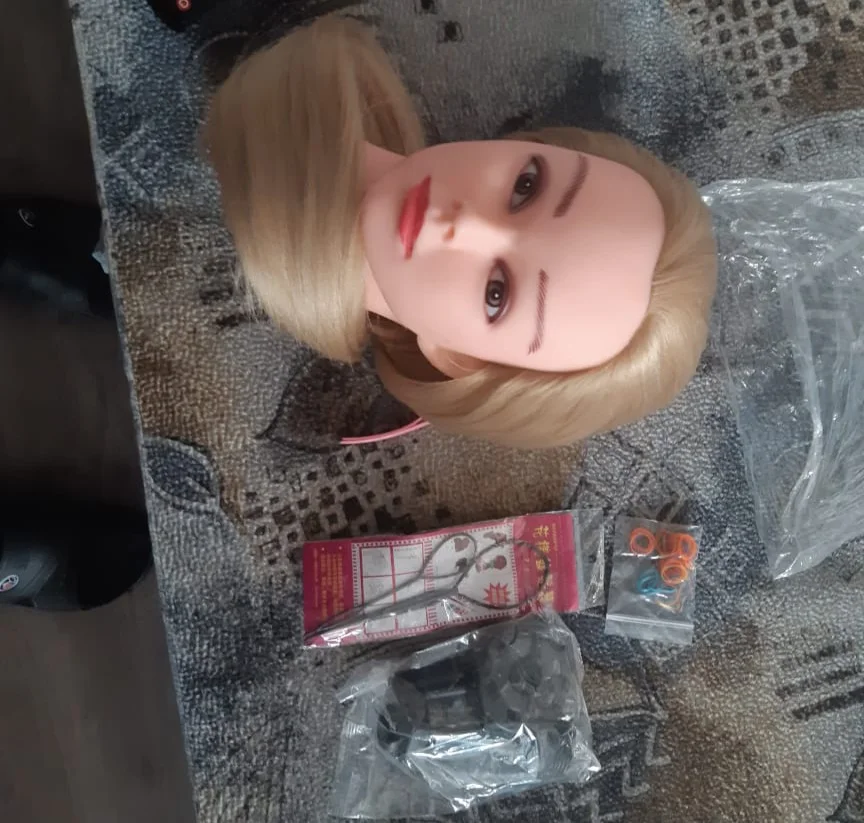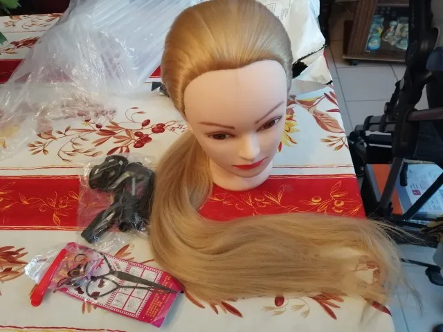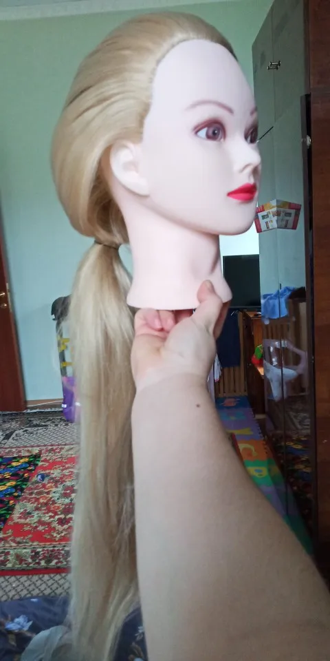 "Волосы" выпадывают при расчёсывании , на долго этого манекена не хватит.