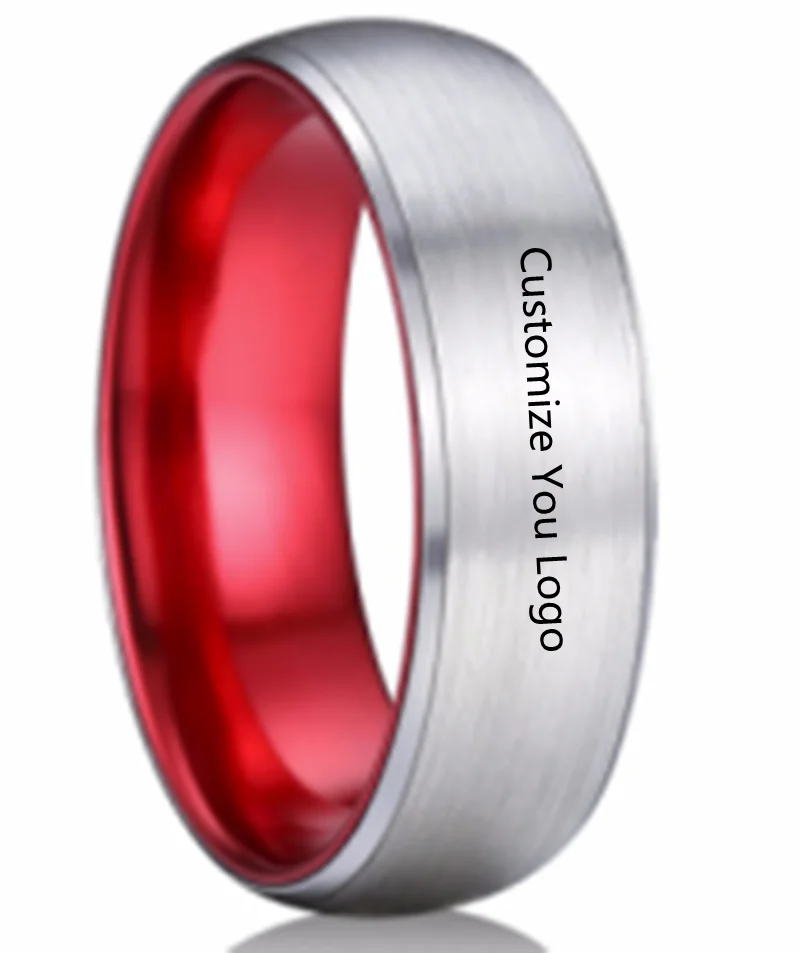 8 мм Серебряное и красное матовое кольцо из карбида вольфрама с куполом, удобная мужская Свадебная лента, Крутое летнее ювелирное изделие для пальцев, размер от 9 до 13