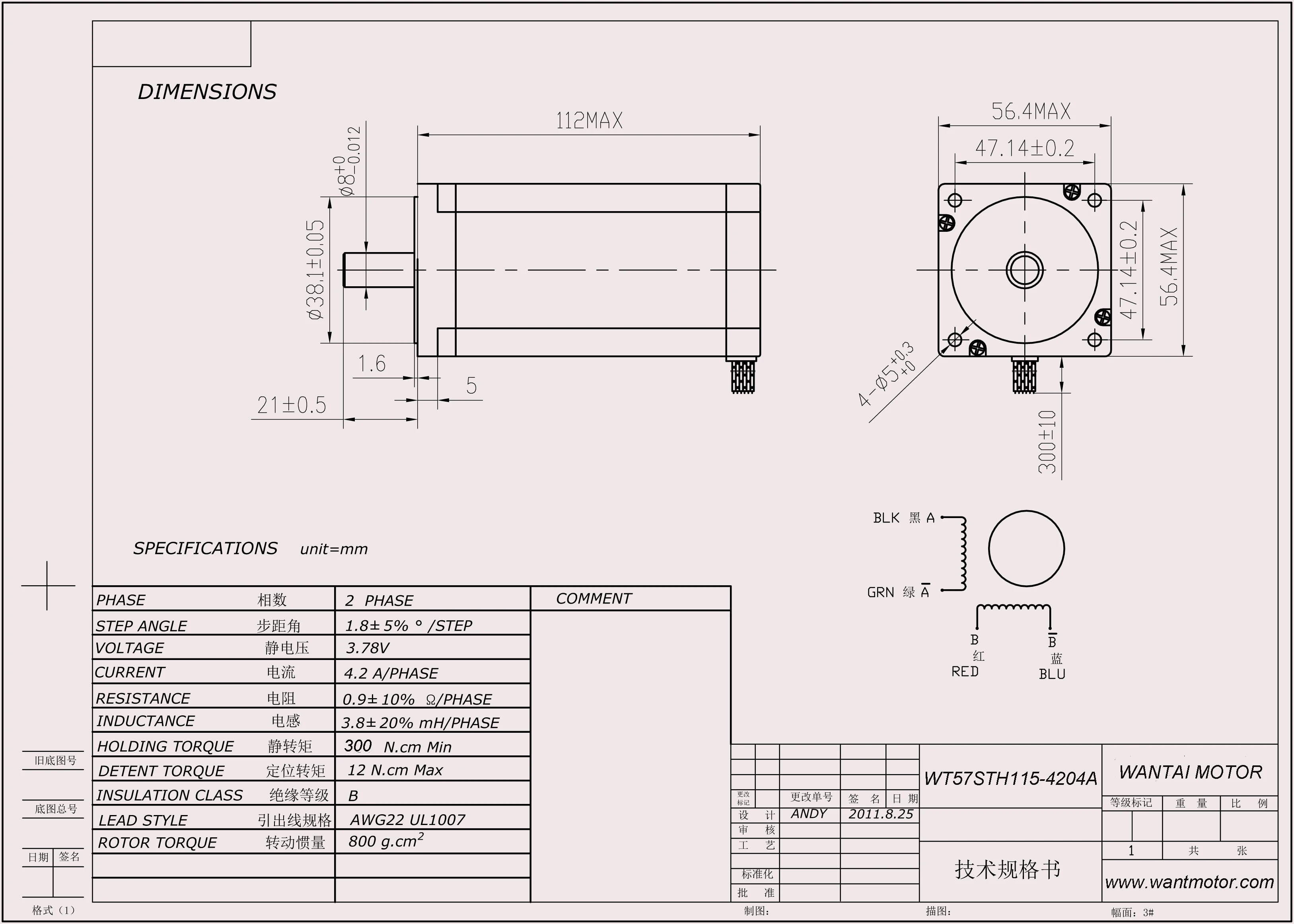 1 шаговый двигатель: WT57STH115-4204B