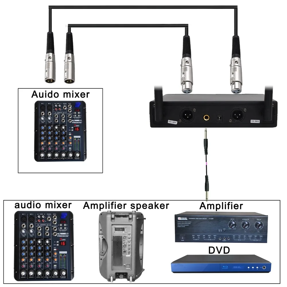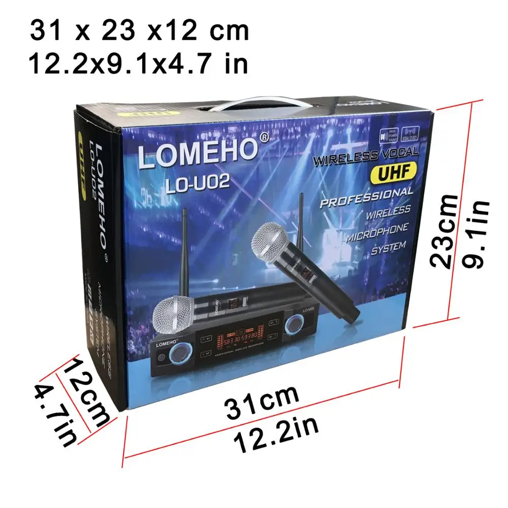 Простой в использовании Профессиональный 2 ручной динамический микрофон с УВЧ частотами, 2 канала, беспроводной микрофон для караоке-системы, LO-U02