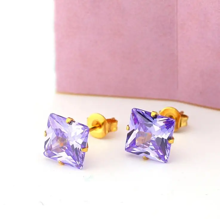Серьги-гвоздики FairLadyHood из нержавеющей стали для мужчин и женщин, квадратные ювелирные украшения розового цвета с фианитами