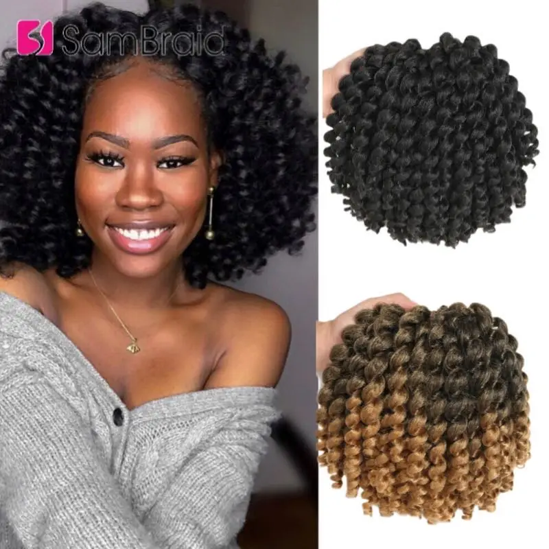Самкоса вязание крючком косички ямайский отскок крючком волос Синтетические локоны 8 дюймов