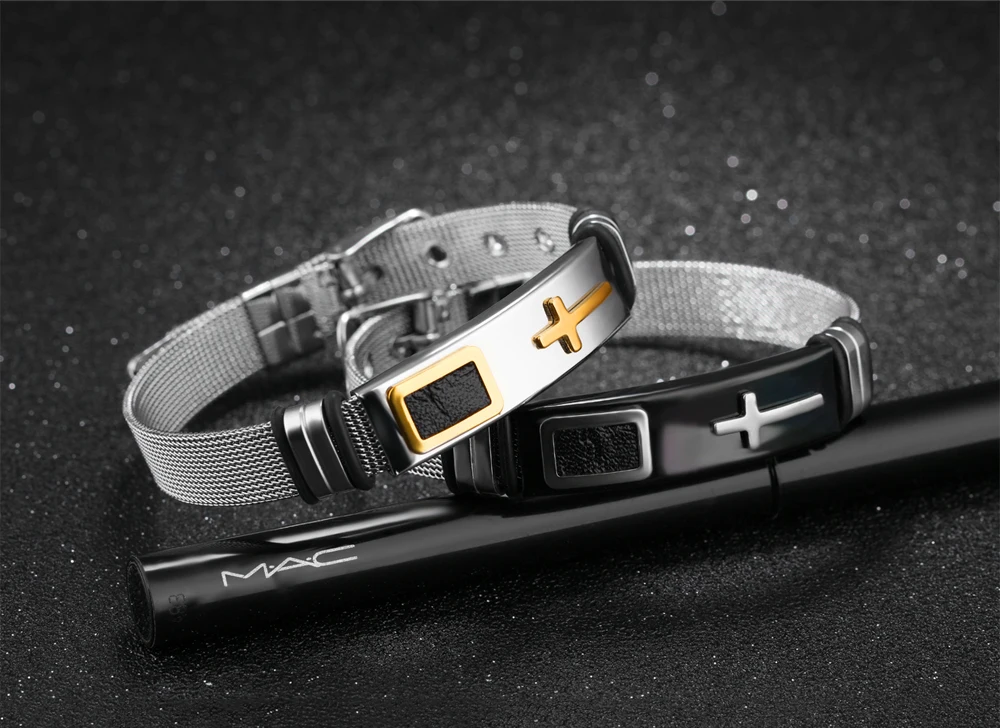 MNWT модный мужской стальной браслет с крестом в стиле панк, сетчатый Браслет с кабелем, браслет в стиле панк, Регулируемый Браслет-манжета