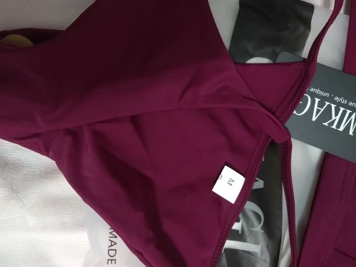 Соответствует описанию. Доставка до пункта выдачи в СПб заняла 2 недели. Ткань хорошая, плотная. Аккуратный. Застежка одна, регулировать обхват под грудья нельзя. Регулируются лямки, паралоновые вставки достаются. Размер S соответствует 42. Цвет яркий и сочный. Трусики без резинок на талии и ножках, поэтому наверное в "действии" будут не очень плотно сидеть ещё и из-за своей формы. А так симпотичный купальник, как на картинке. У продавца нет фото, как трусики выглядят сзади. Наверное, это называется бразильянки) попа открыта почти полностью.