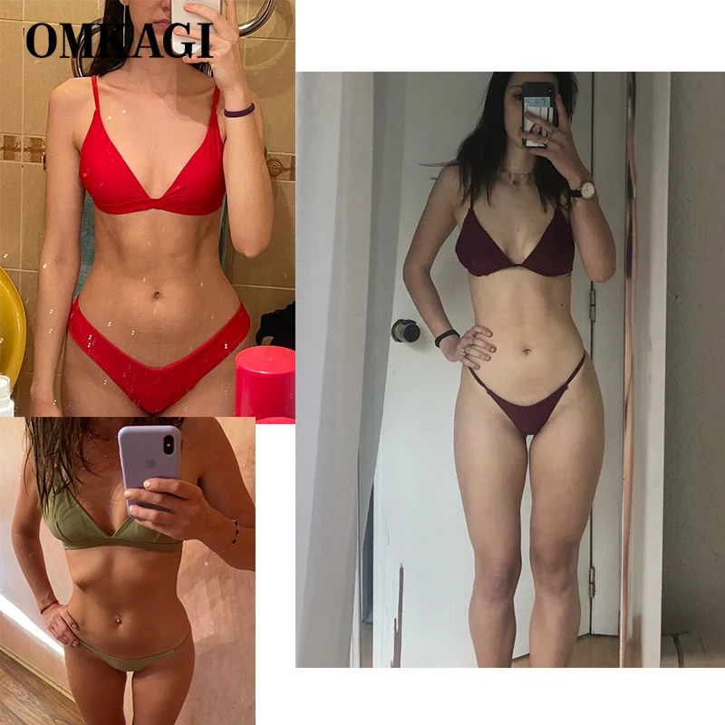 Комплект бикини OMKAGI, женский, с пуш-ап эффектом, пляжная одежда, 2021