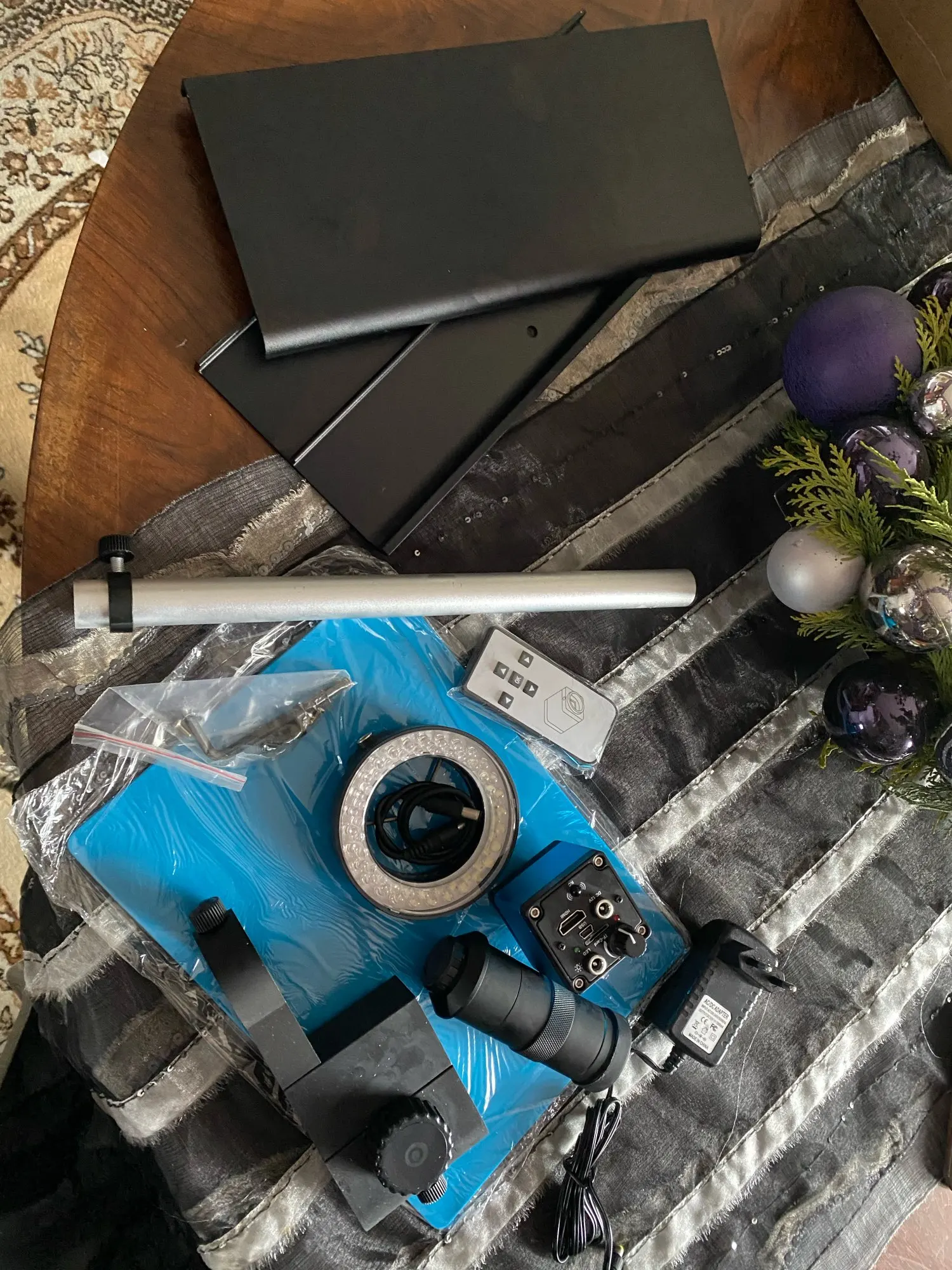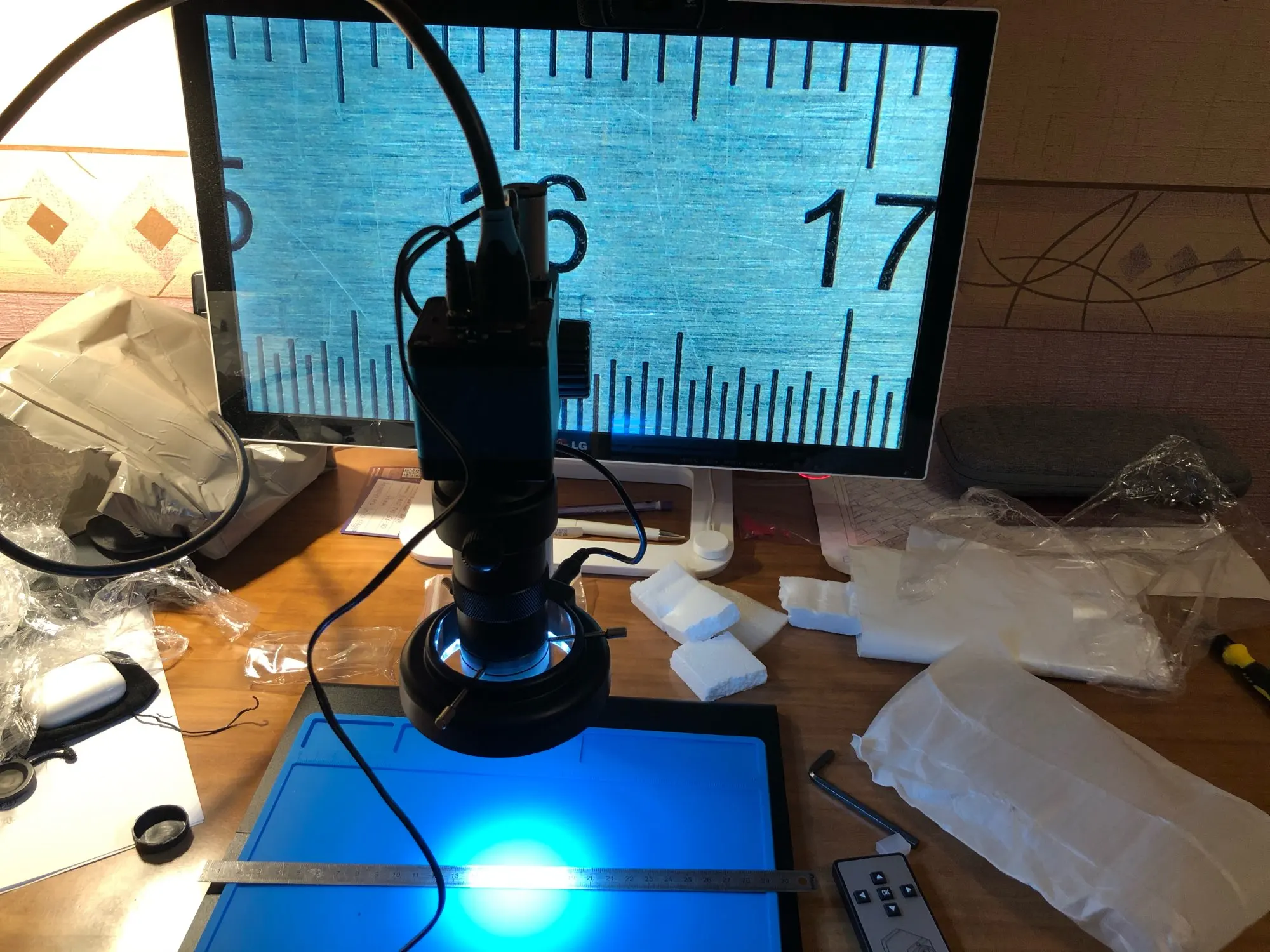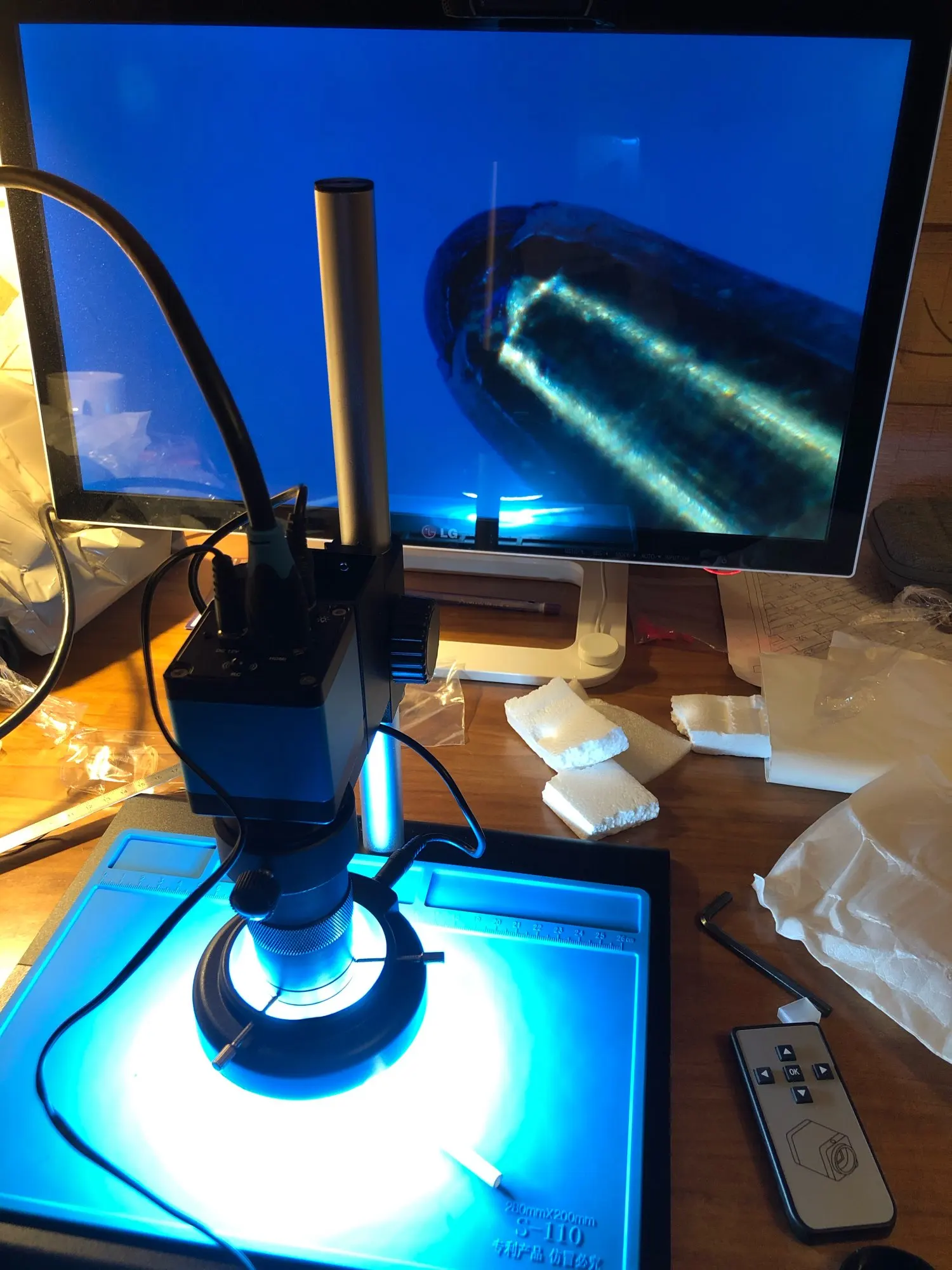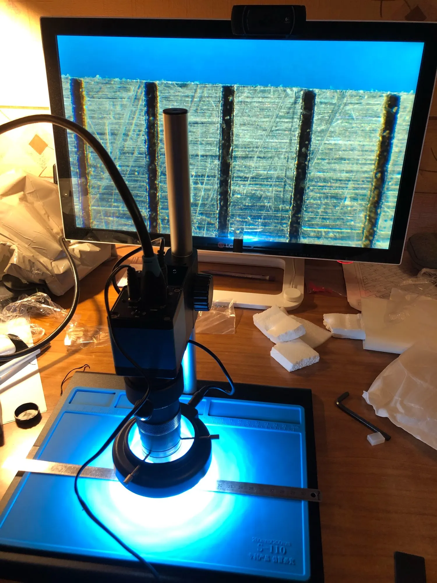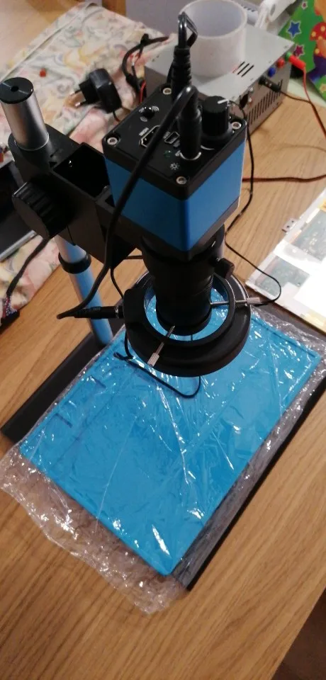 Микроскоп доставили быстро, курьером до двери. Касаемо самого микроскопа, изображение довольно таки приличное, задержка по hdmi минимальная, пробовал даже паять под ним, получается но не привычно. По метаданным фотографий сделанных этим микроскопом это камера OSEECAM H1603 с матрицей Sony 2 мегапикселя. Подставка микроскопа немного кривовата, исправил это резиновыми ножками.