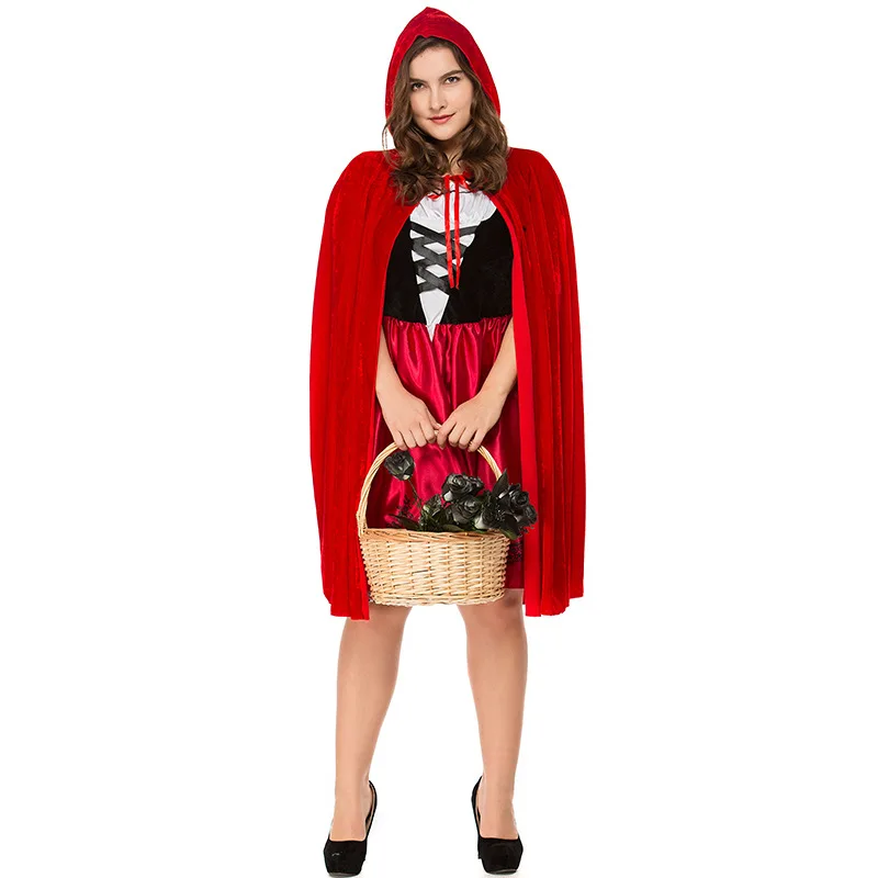 Красный костюм для верховой езды с капюшоном для женщин; нарядное платье для вечеринки на Хэллоуин; S-3XL; 9013