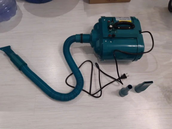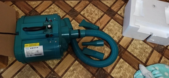 Заказ пришёл быстро 29 дней. Упакован мощно, внутри короб из пенопласта, коробка немного порволась, но это не принесло вреда. Компрессор очень мощный и шумный, собаку и все вещи буквально сдувает. Но собака привыкла. Раньше сушили обычным феном 2400w за 15 минут, этим феном за 5 минут, не обжигая собаку и гораздо суше. Спасибо продавцу!