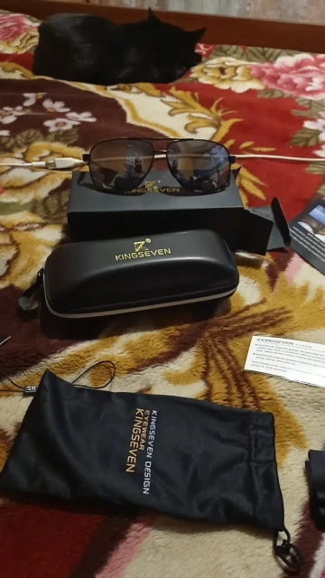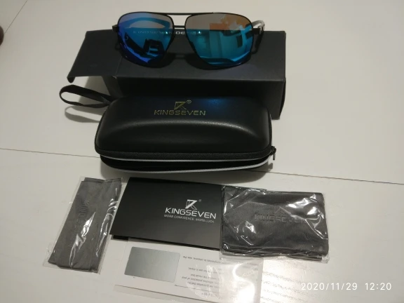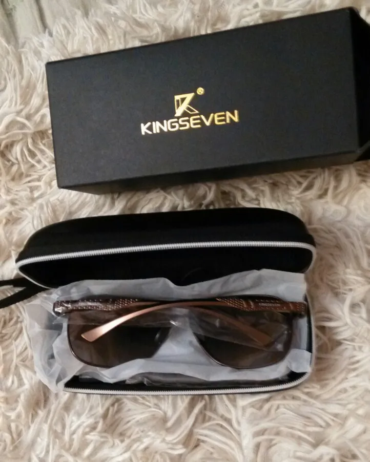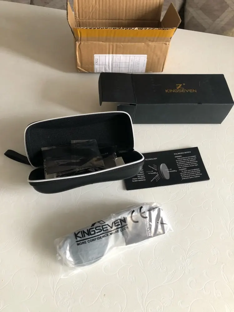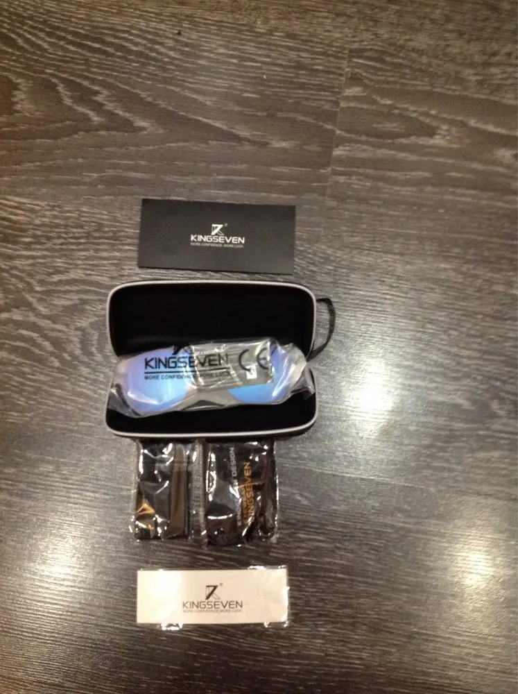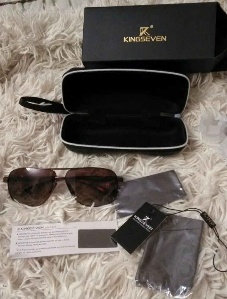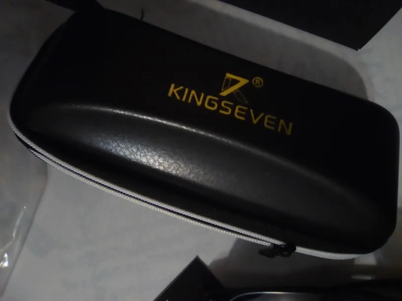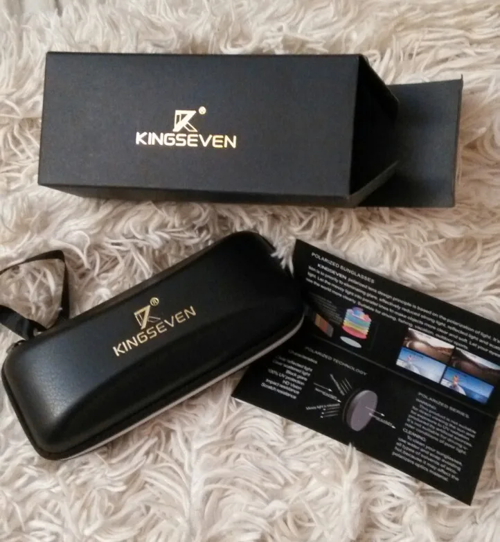 KINGSEVEN - это качество! Комплектация такая, что не стыдно подарить. Только из нескольких заказов только одна коробка была непомятой, поэтому просите продавца упаковать как следует. По характеристикам очки очень крутые: поляризация присутствует, защита от ультрафиолета присутствует (проверял УФ-фонариком). Поляризацию можно проверить очень просто - нужно повертеть очки перед LCD-монитором. Если в одном из положений изображение практически полностью пропадает, значит поляризация есть. С промокодами и купонами из группы вконтакте "GXSmart" заплатил всего 236 руб. (или 3.13$), что очень выгодно. Есть смысл ловить скидки и покупать на распродажах. Мои рекомендации.