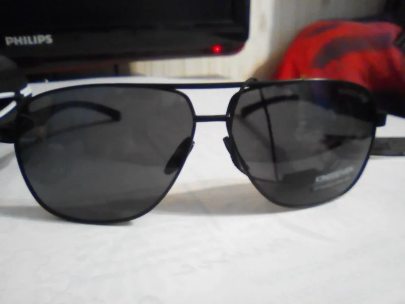очки пришли быстро принес курьер ,поляризация присутствует,корпус алюминиевый на переносице не чувствуется что очки одеты,мне удобны .душки при складывании упераются в линзы наверное будут царапать ну посмотрим .время покажет ценник дороговат почти 1000руб.