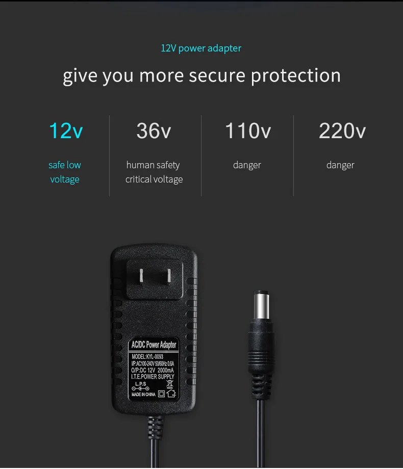 Надежная защитаНоминальное напряжение: 12 В. 2 А.Номинальная мощность: 24 Вт