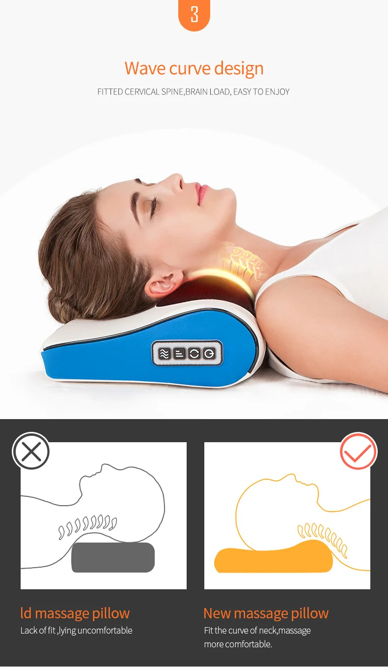 1. Разработан с 16 массажными шариками2. Разминание по часовой стрелке и против часовой стрелки3. Массаж шиацу4. Легкий и тяжелый разминание5. Теплый бликов6. 15 минут для предотвращения массажа