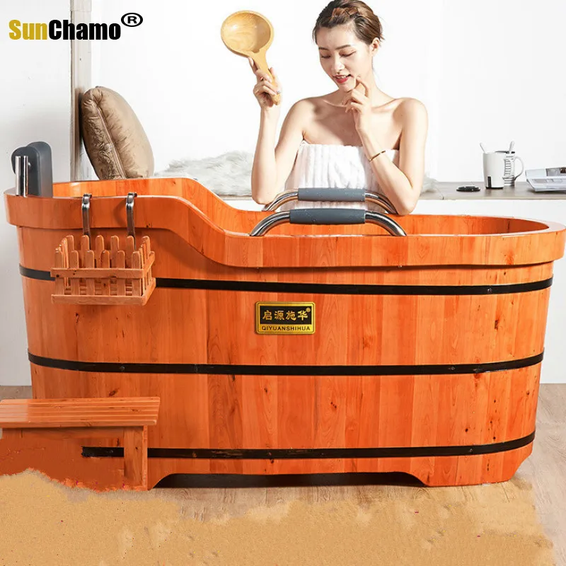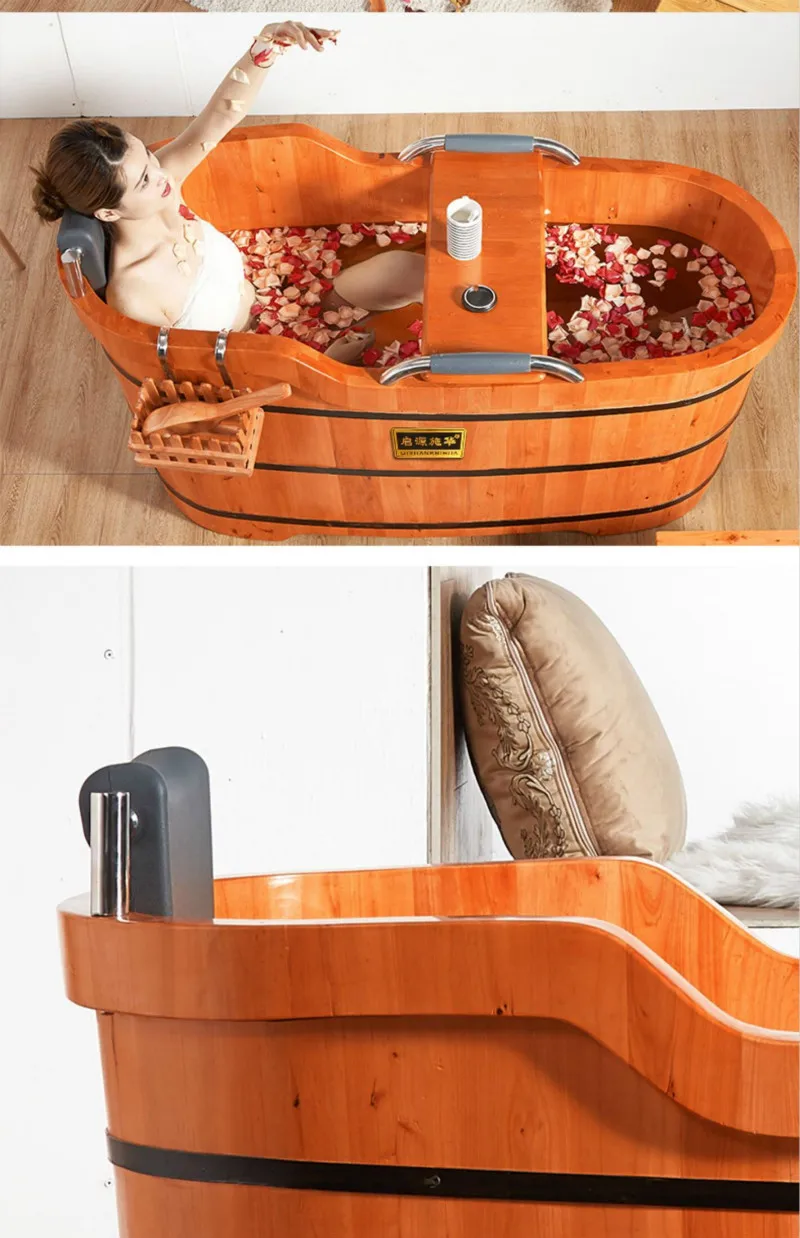 Высококачественная ванна с кедровым цилиндром, поддерживающее сиденье для безопасности, ванна для взрослых, подушка для душа, сауна из массива дерева, спа