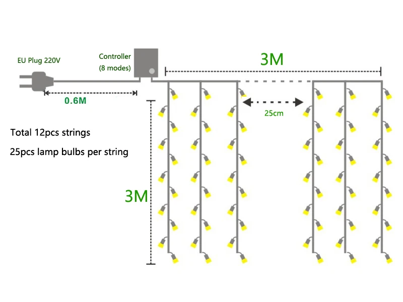 Новогодняя гирлянда-занавес на окно, светодиодная гирлянда ЕС, Сказочная гирлянда, светодиодсветильник гирлянда, Рождественский, Свадебный, Рамадан, домашний декор