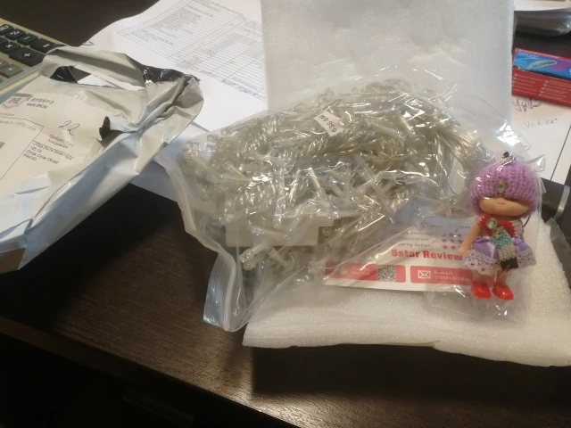 Посылку получила за 2 дня,невероятно быстро,даже не ожидала.Курьер привез до двери.Очень красивая гирлянда,всё работает! Ребенка приятно удивил подарочек,маленькая куколка.Продавца рекомендую! Спасибо большое за хороший товар и оперативность!!!