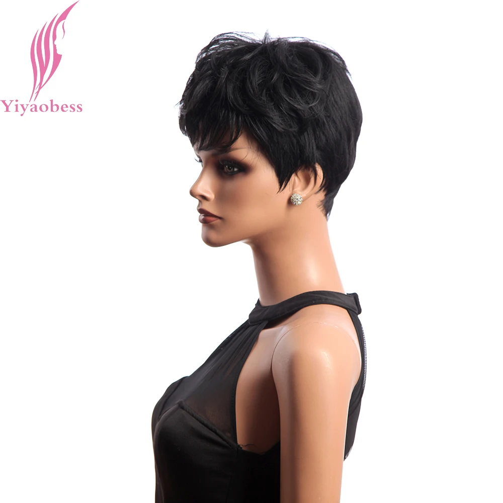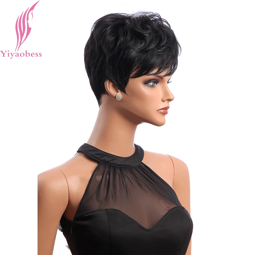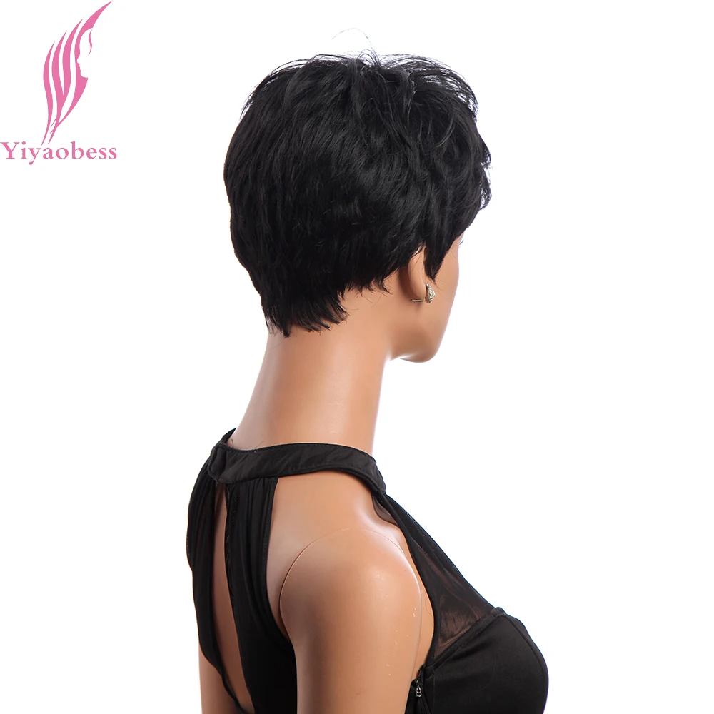 Yiyaobess короткий черный парик, вьющиеся волосы, синтетические натуральные афроамериканские парики для женщин, японское волокно