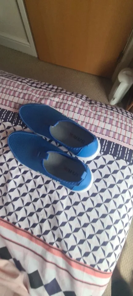Заказала эти кроссы-тапки 14 августа, отправили 19 августа, пришли на почту 3 сентября. Забрала их 7 сентября. До этого долго переписывалась с продавцом, ибо долго не могла определиться с размером. На российский 37 (стопа 24 см) их 38 подошёл впритык. Можно было и 39 взять. Но, опять, обычно такие тапки в процессе носки растягиваются в длину на 0,5 см, так что пусть лучше будет так, 38 китайский. Купила за 671,15 ₽ (норм цена). Сняла 1 звезду за несоответствие задника картинке. А так, всё остальное в порядке. Пришли хорошо упакованные, не мятые и, довольно таки, недолго по времени (всего выходит около 3 недель доставка, нормально в общем). Брала не себе, так что удобные или нет, пока сказать не могу. Уже не сезон их носить, холодно, пока обветриваются (сильный химозный запах потому что) Фото сделать пока не получается, я в другом городе сейчас нахожусь (тапки с почты забрала и сразу отдала; отзыв пишу на основании мнения хозяйки тапок). Потом дополню про это, когда подразносятся.