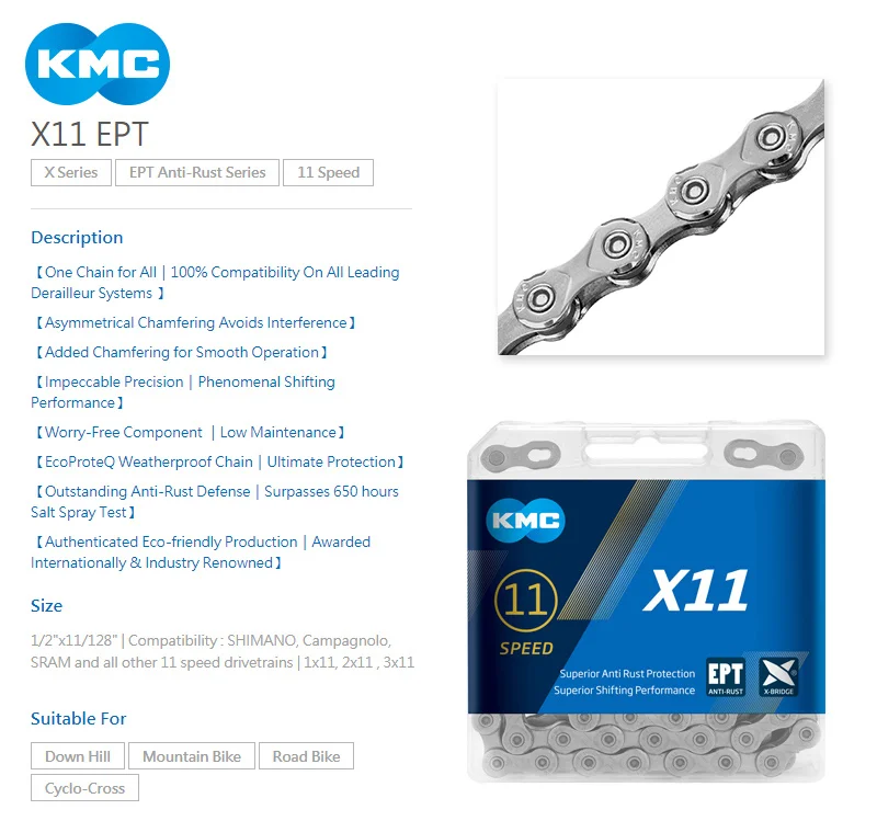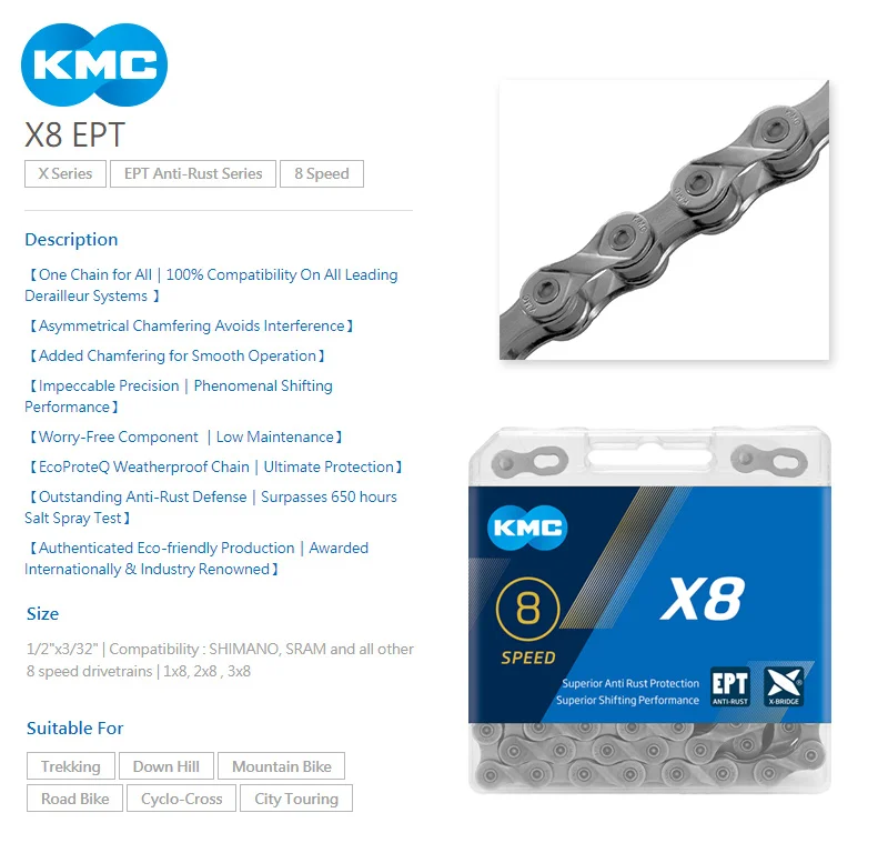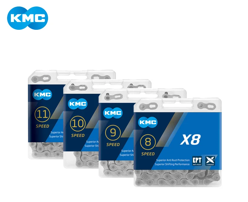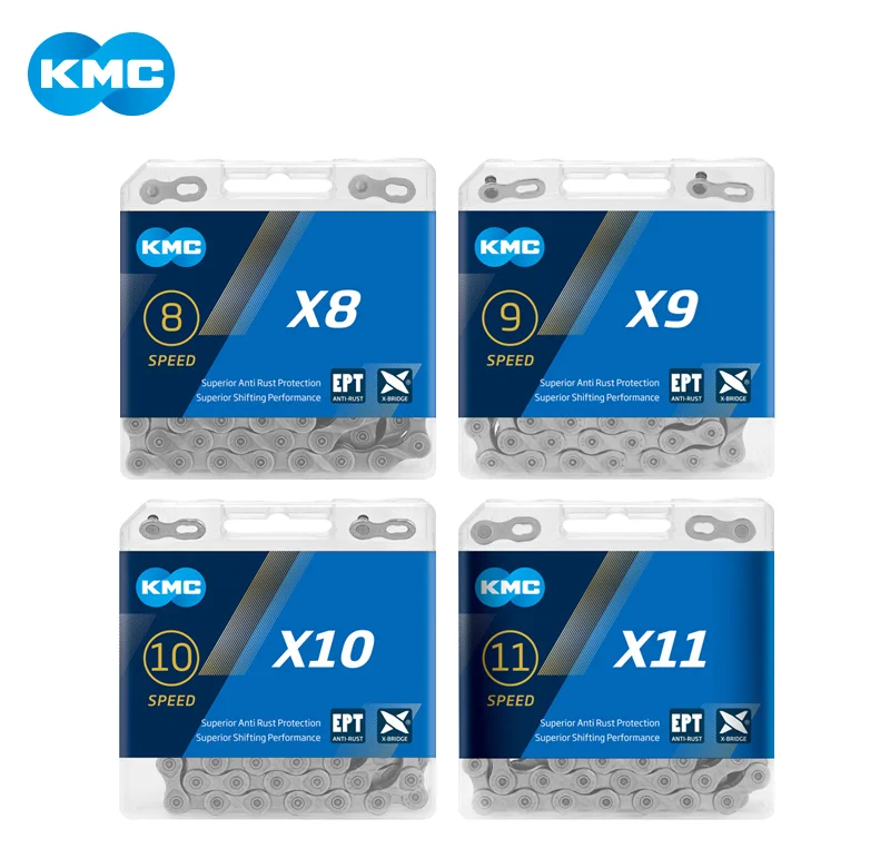 Цепь KMC X8, X9, X10, X11, EPT, 116 звеньев, 9 В, 10 в, 11 в, 8 скоростей, серебристая, предотвращает ржавчину, ссветильник Кая, двойная цепь для горного и дорожного велосипеда