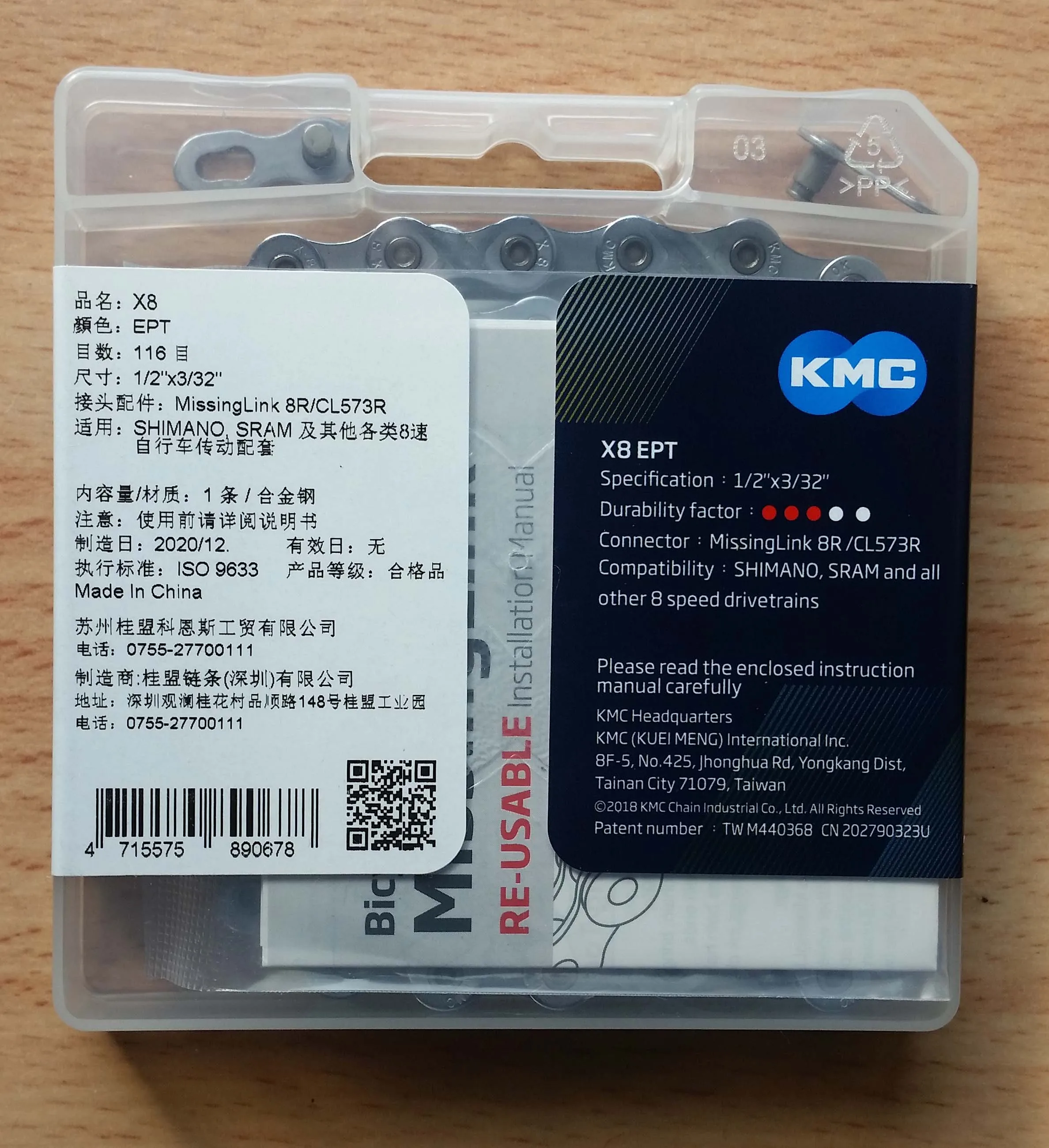 Пришло быстро. С виду всё в порядке, упаковка немного помята. Цена на данную цепь у этого продавца хорошая. Рекомендую. Поставлю чуть позже - цепь которую брал до этого, тоже КМС только без EPT, изнашивается дольше чем я ожидал, что весьма приятно). Правда, брал у другого продавца, но он "задрал" цену. Эта с виду выглядит также - надеюсь прослужит не меньше.