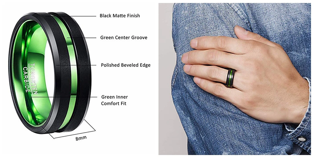 Классический 8 мм черный матовый отделка центр рифленый Зеленый покрытием комфорт подходит обручальное кольцо, подходит как для мужчин, так и для женщинПодлинный карбид вольфрама, прочный и устойчивый к царапинам.Идеально подходит для свадьбы, помолвки, юбилея, Дня благодарения, Рождества и повседневной жизни.