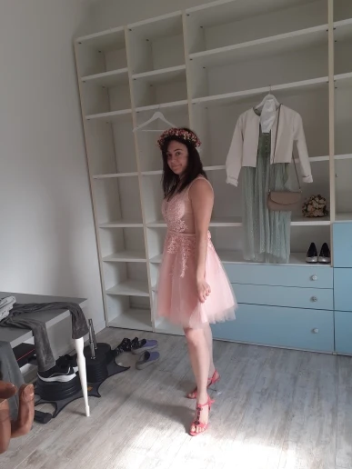 Хорошо получил в Швейцарии, она очень хорошо выглядит на моей 13-летней дочери, приглашенной на свадьбу, она почти делает торжественное платье, за исключением того, что она средней длины, затягивание шнуровкой с чехлом сзади, что позволяет регулировать все груди, не растягивается на талии, плиссированные бедра для всех размеров. Расшитые блестками кружевные бюст в серебристых тонах.
