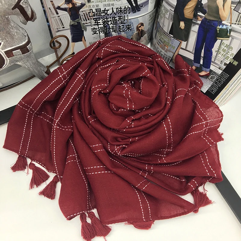 Женский клетчатый шарф Marte Young, классический однотонный длинный шарф из пашмины и хлопка, с вышивкой, на осеньзиму
