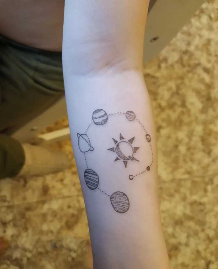 Милая Временная тату-наклейка Космос для детей боди-арт искусственная черная переводная татуировка Вселенная планеты узорные тату для женщин