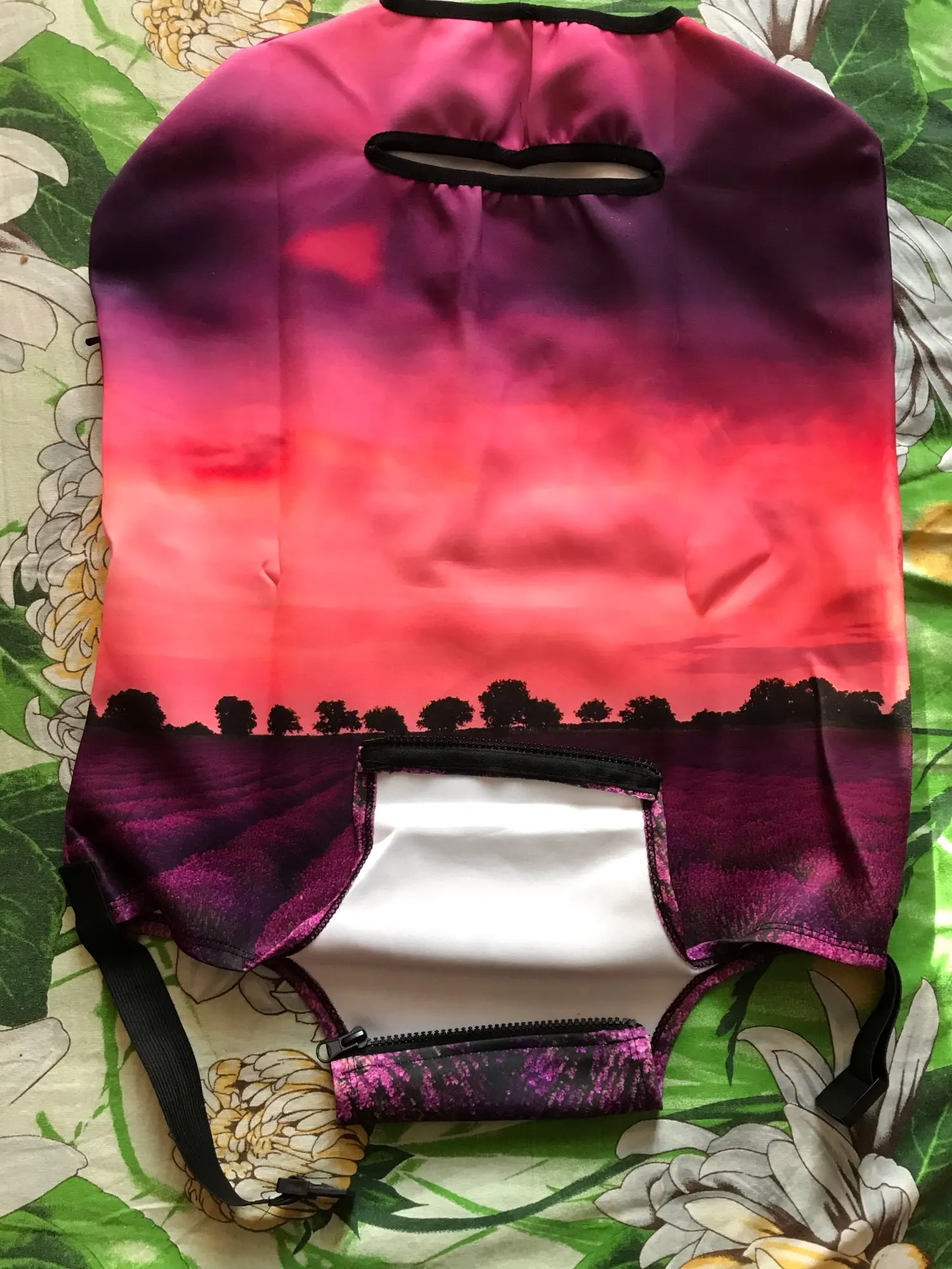 Отличный чехол, хорошо сшит, яркий как на картинке, на размер чемодана 38×23×60 подошел M. Продавец всегда на связи, помог определиться с выбором. Посылка отслеживалась. Советую к покупке.