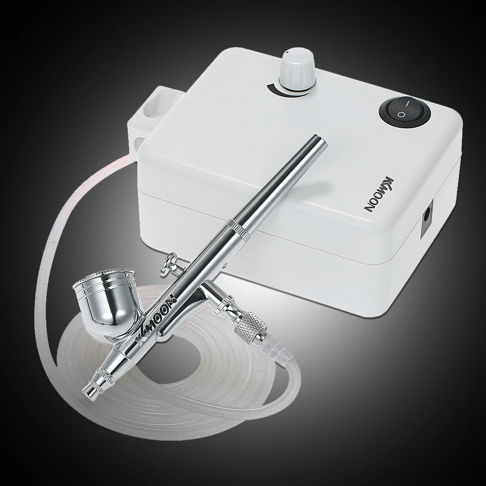 Аэрограф KKmoon с компрессором воздуха, 220 В, набор с гравитационной подачей, Двойное действие для художественной живописи, тату, маникюра, модель распылителя, набор инструментов