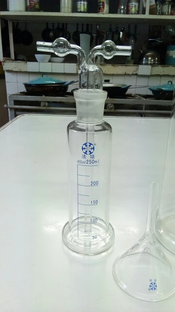Drechsel Бутылка для промывки газа, емкость 250 мл, лабораторная стеклянная бутылка для промывки газа, кальян кальяна Емкость: 250 мл