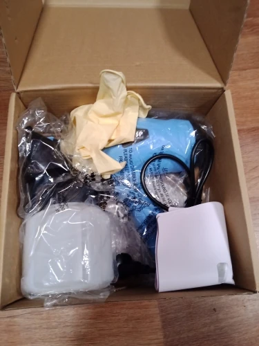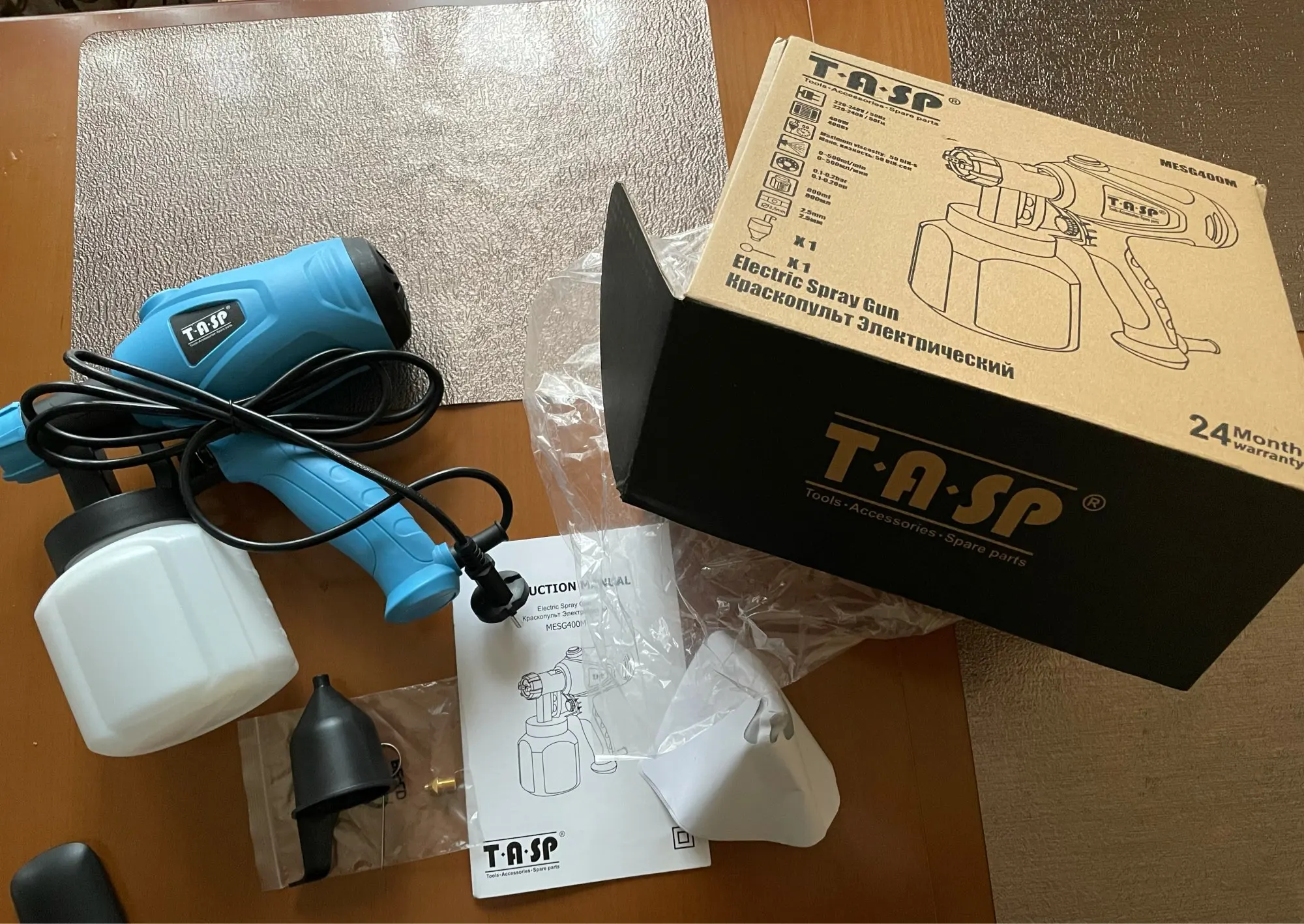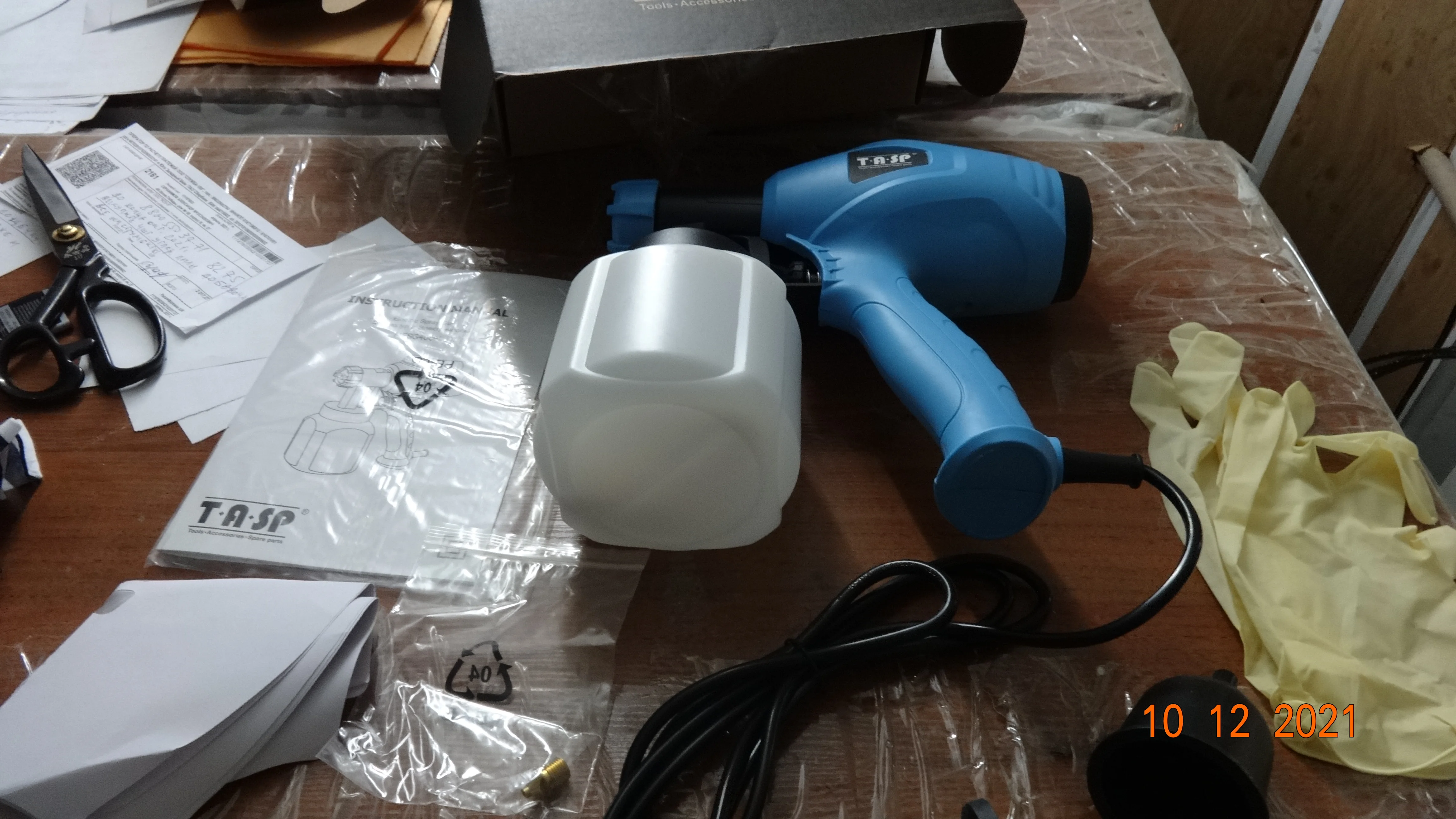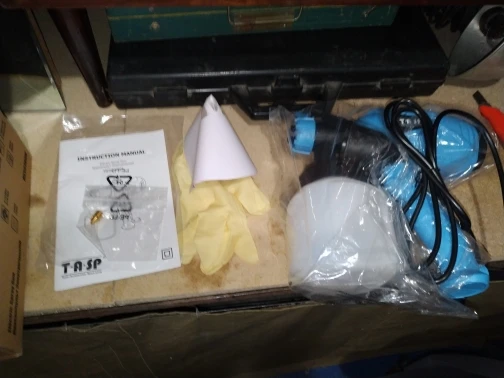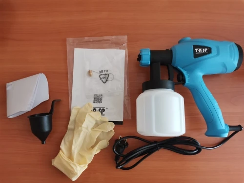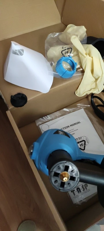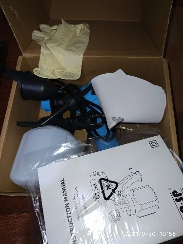 Заказ прибыл быстро, попробовал краскопульт на воде, работает хорошо, в комплекте инструкция, есть русский язык, второе сопло, перчатки, 5 бумажных воронок с сеткой, игла для прочистки сопла, воронка для замера вязкости краски.