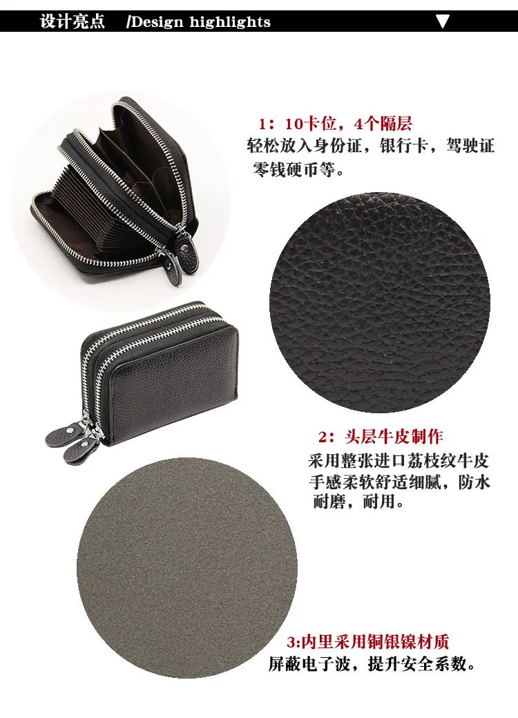 Держатель для визиток, кошельки, двойная молния, натуральная кожа, черныйкрасныйфиолетовыйсинийрозовый, предотвращение RFID, держатели банковскихудостоверений личностикредитных карт