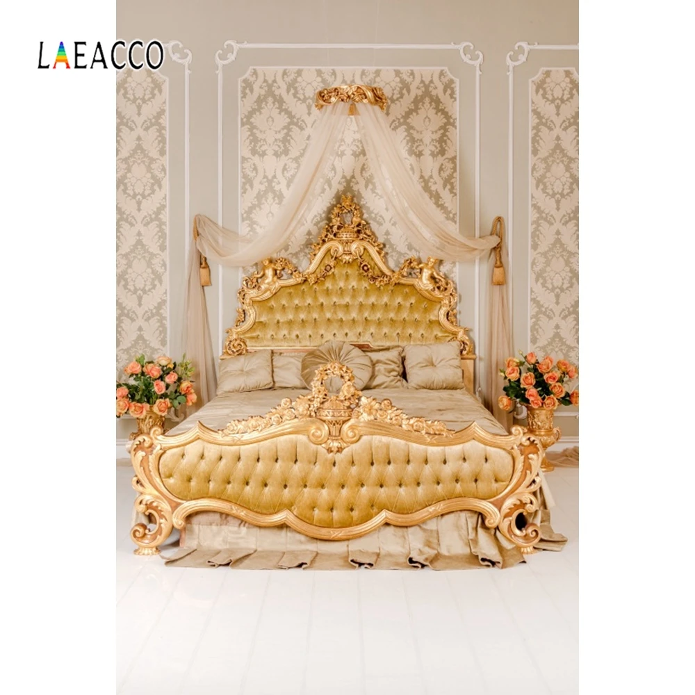 Фон для фотографий Laeacco, с изображением будуара, занавеса, цветов, кровати, изголовья, для фотостудии