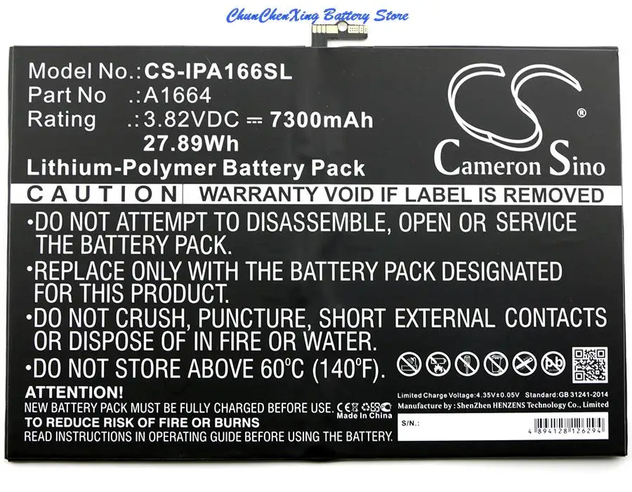 Аккумулятор Cameron Sino 7300mAh A1664 для Apple A1673, A1674, A1675, i-Pad 6,3, i-Pad 6,4, i-Pad Pro 9,7